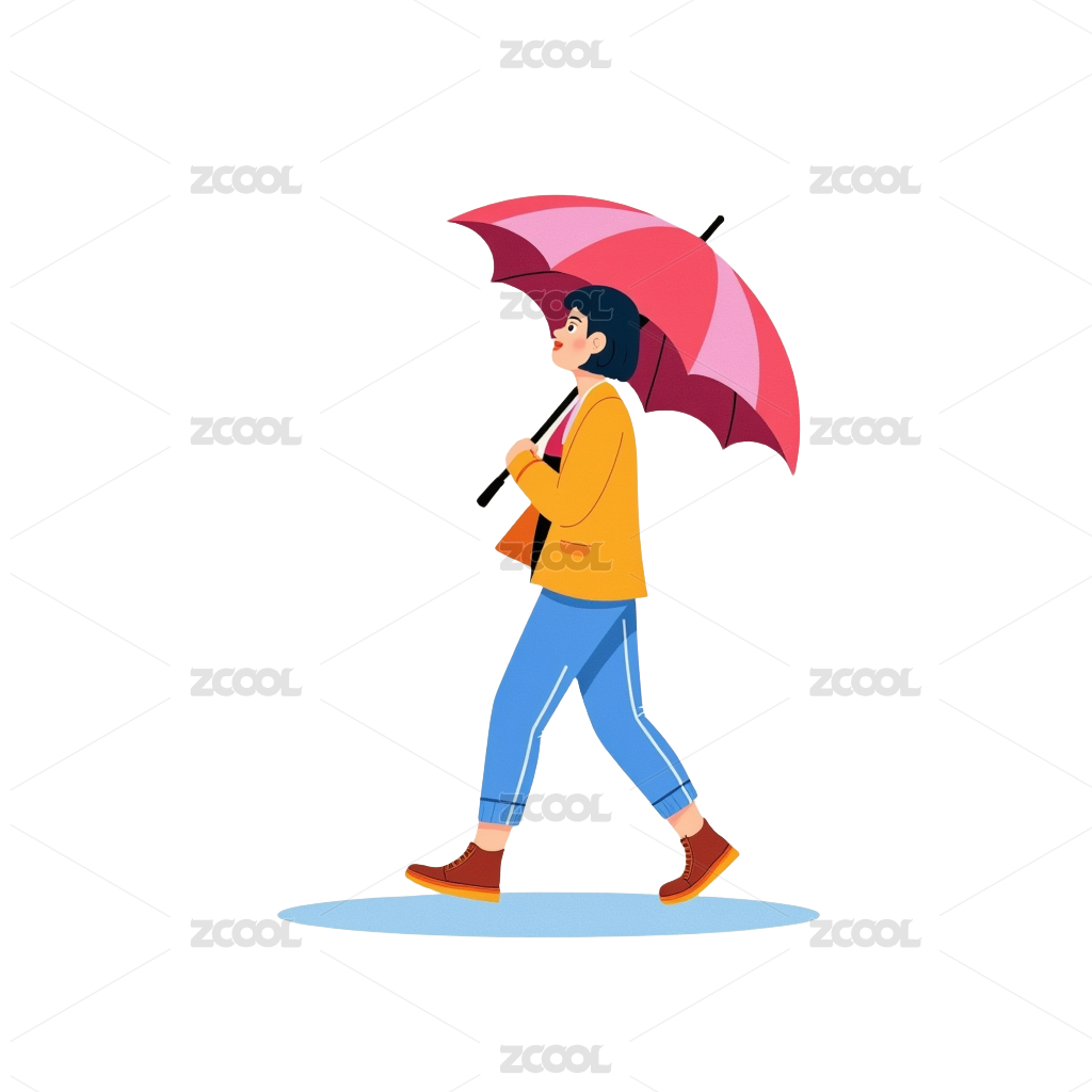 扁平噪点台风天气雨天撑伞的年轻女孩