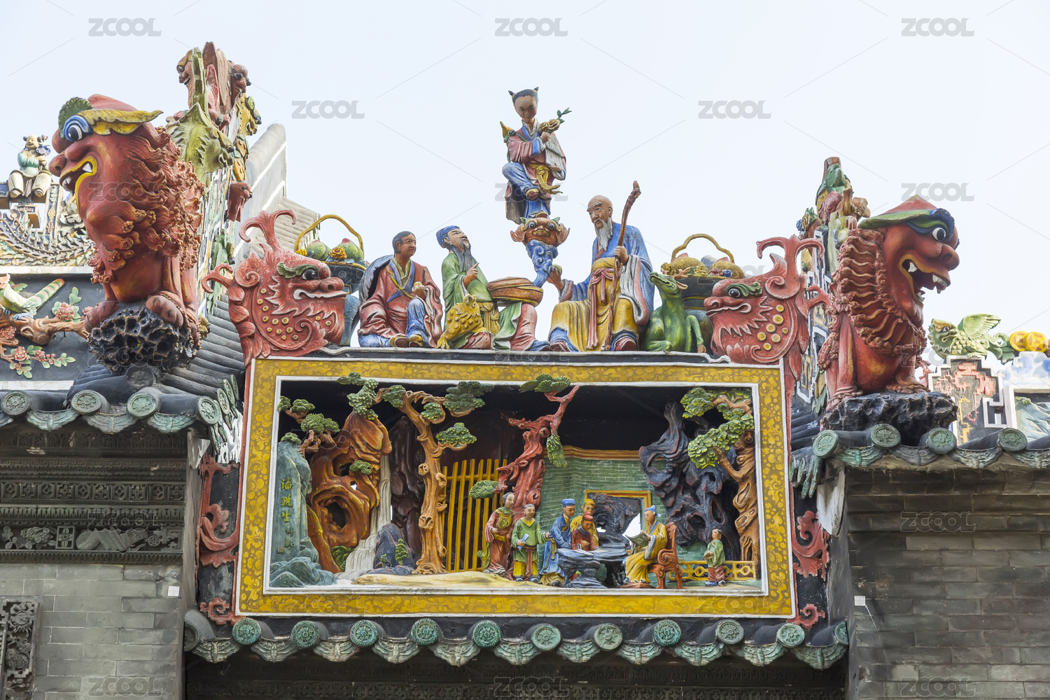 中国广州陈家祠岭南建筑屋顶灰塑陶塑
