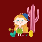 冬季穿兔子睡衣双马尾女孩动物卡片教育插画