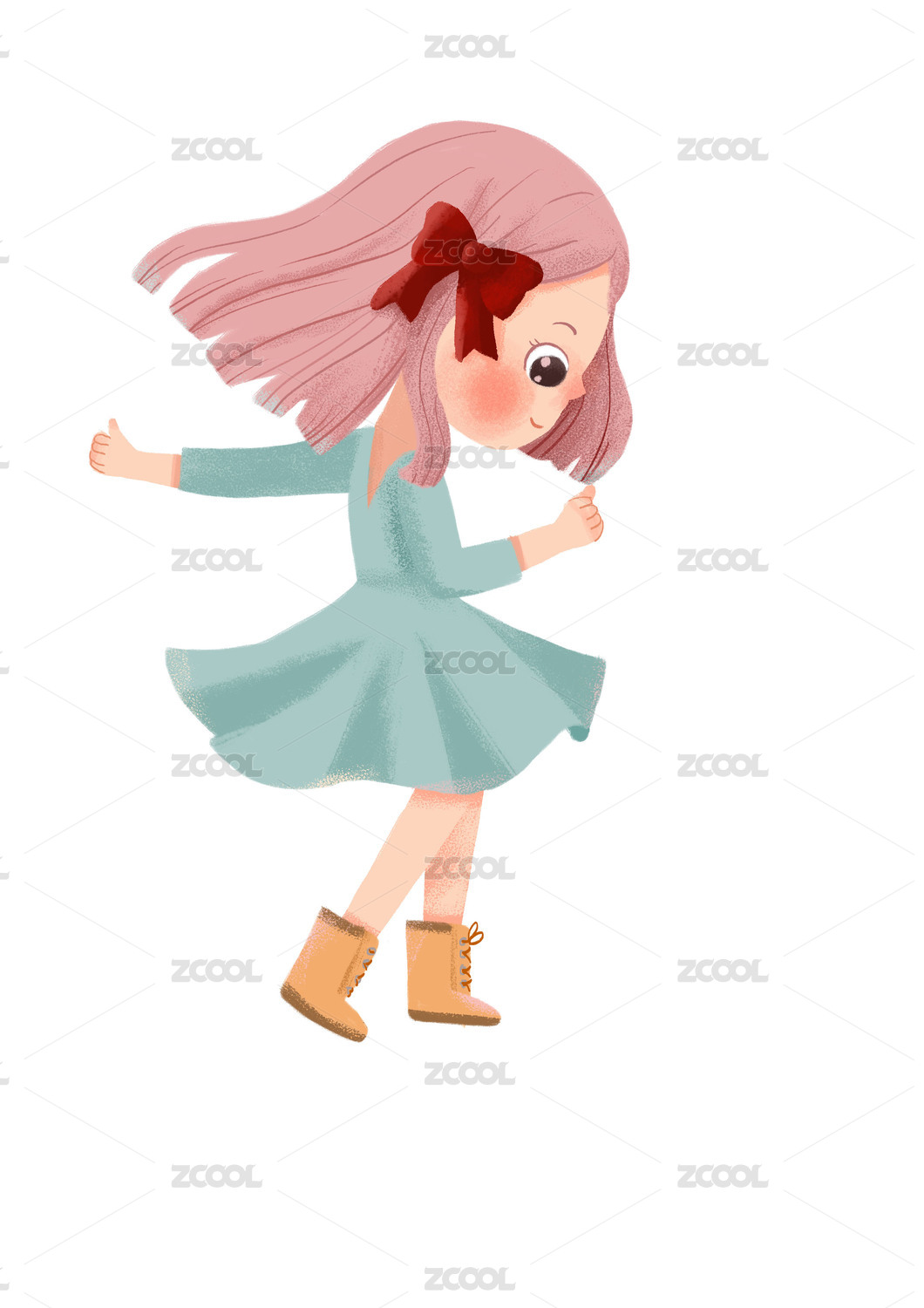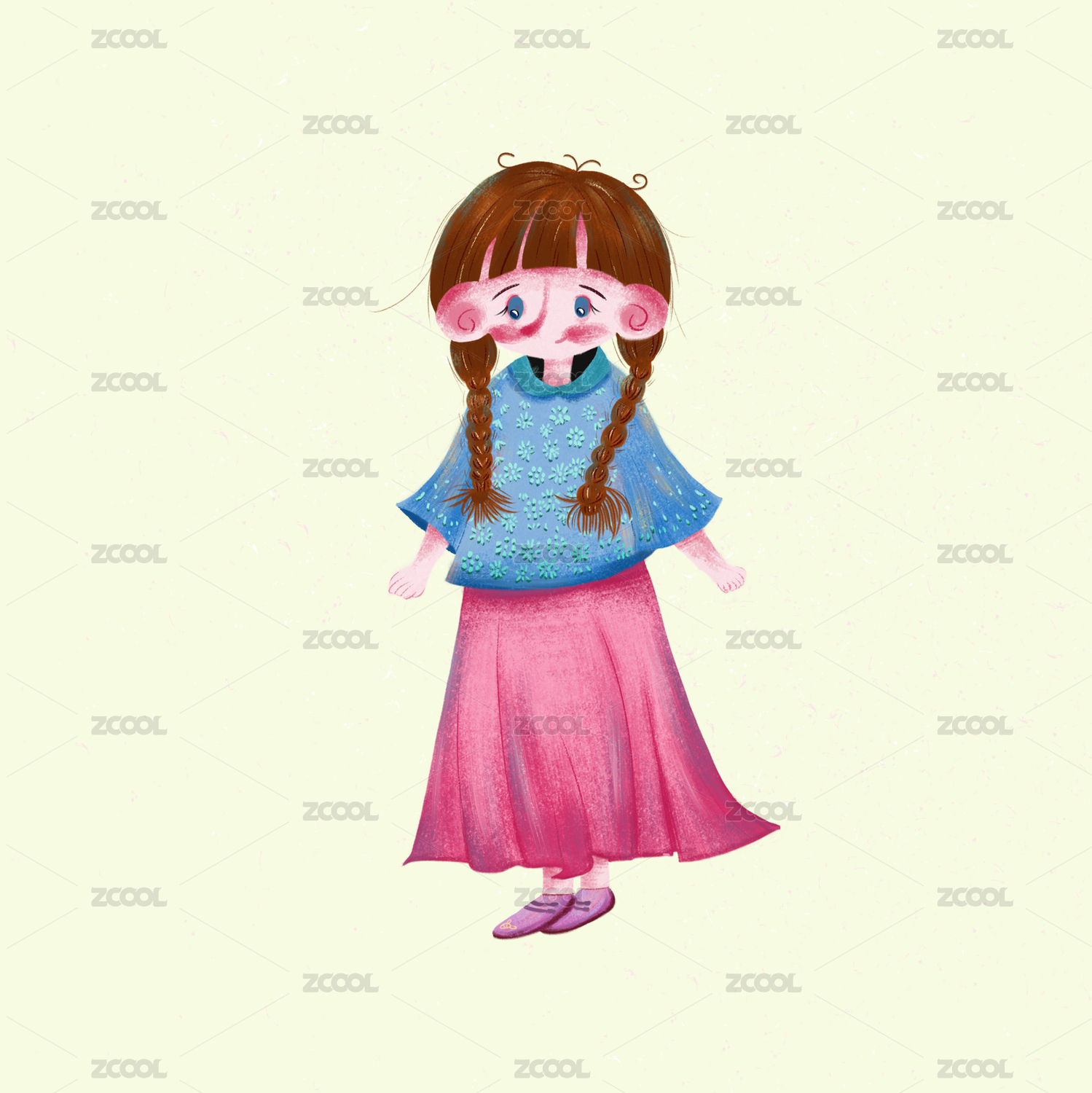 原创插画 萌系小可爱 抱着兔子音乐小女孩