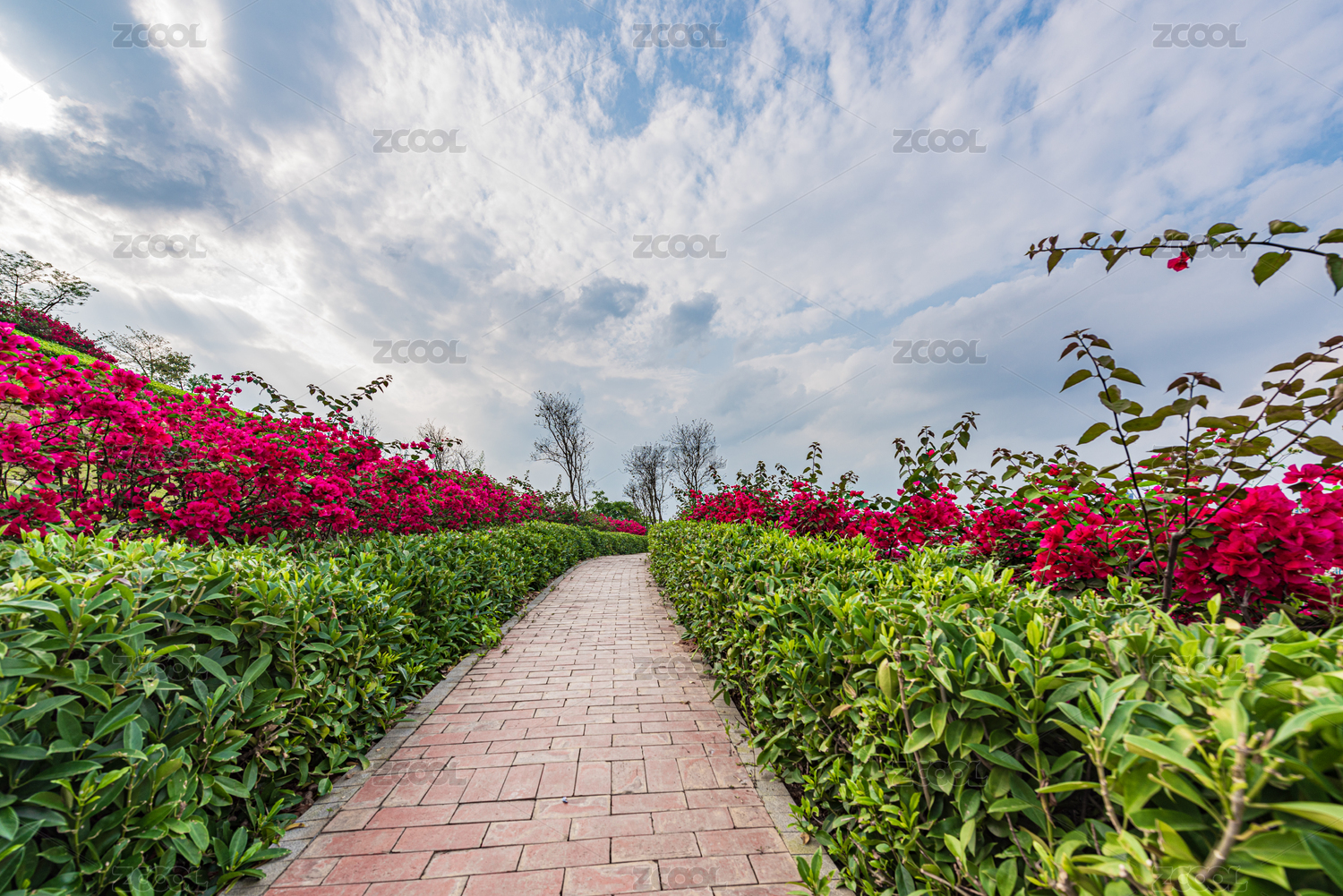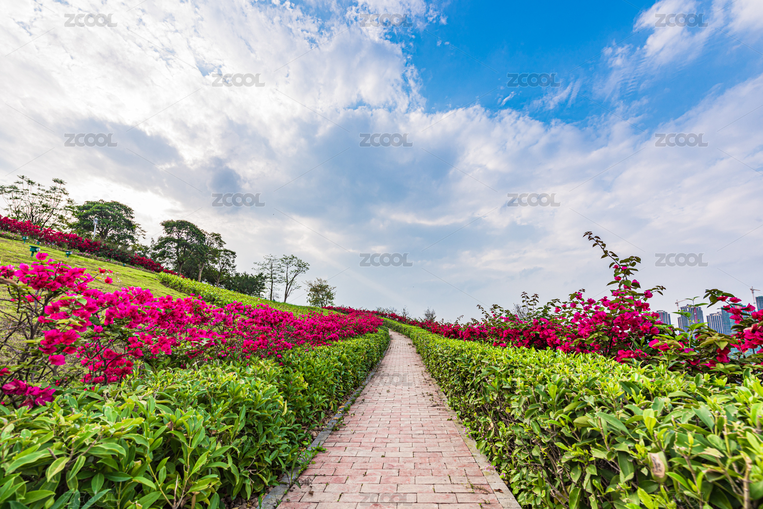 广州麓湖公园鸿鹄山森林山坡鲜花绽放