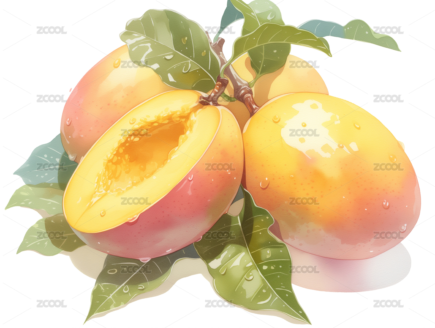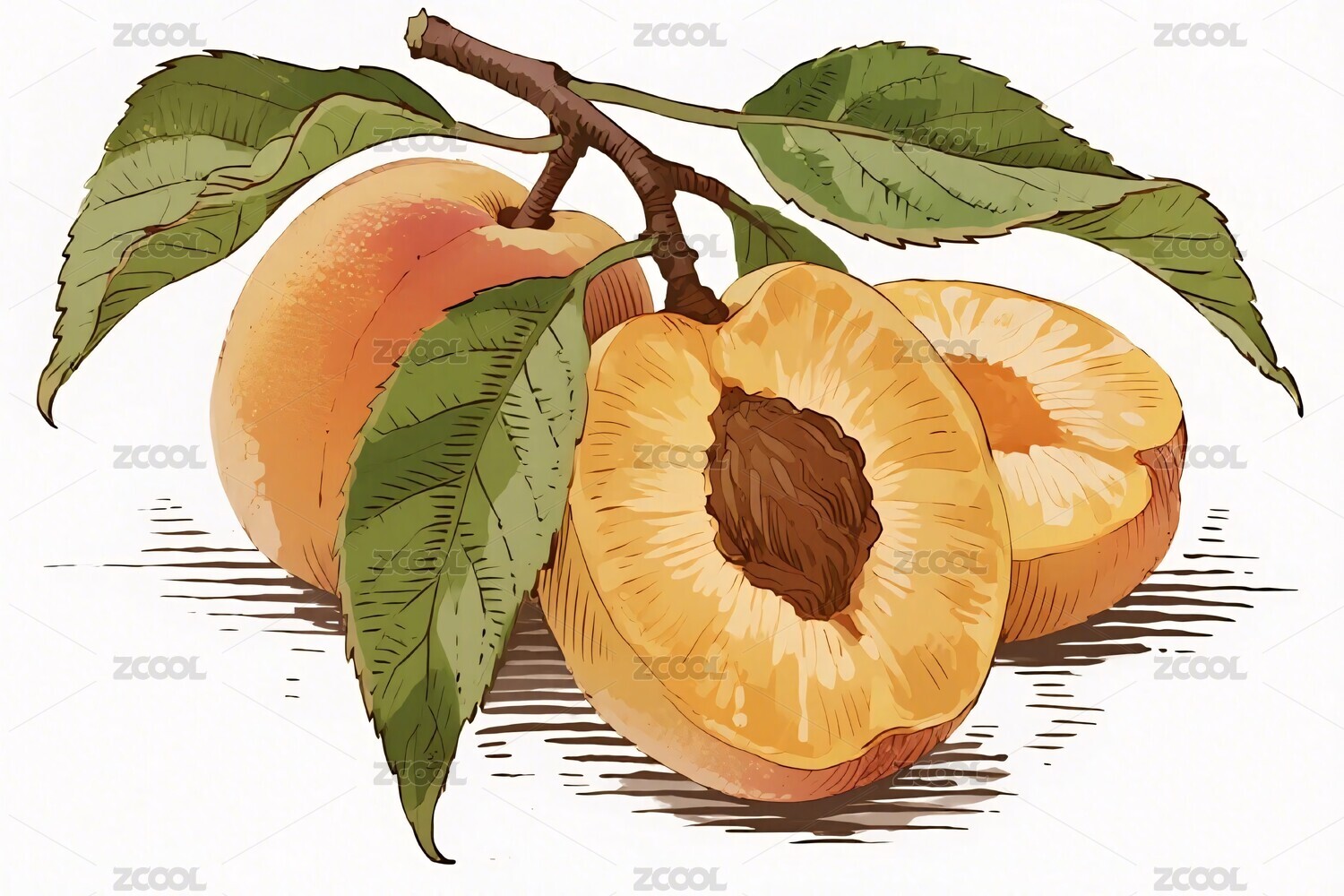 手绘水彩写实风格多汁水蜜桃子水果素材插画
