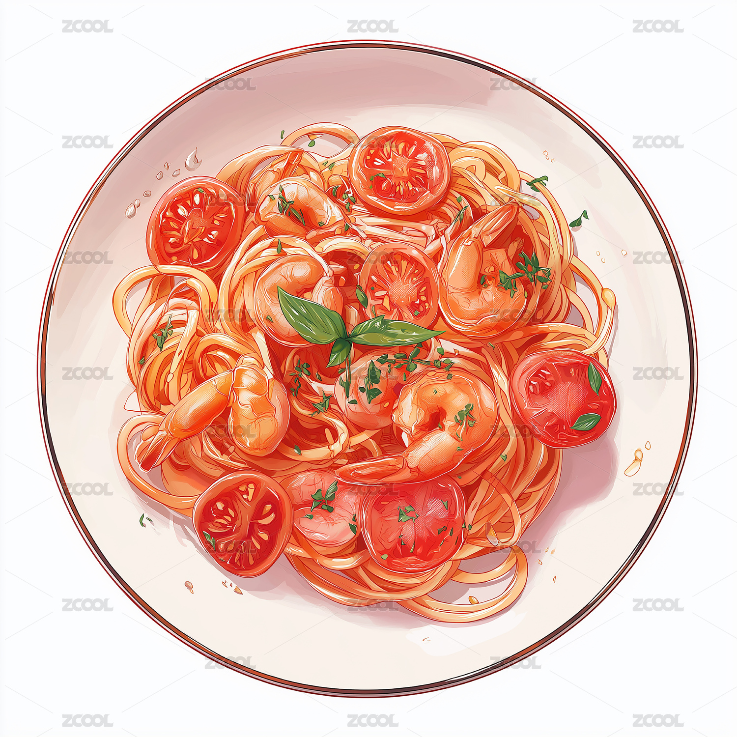 写实鲜虾意面美食插画餐饮设计素材