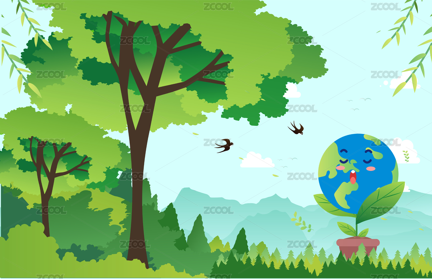 保护地球爱护自然插画