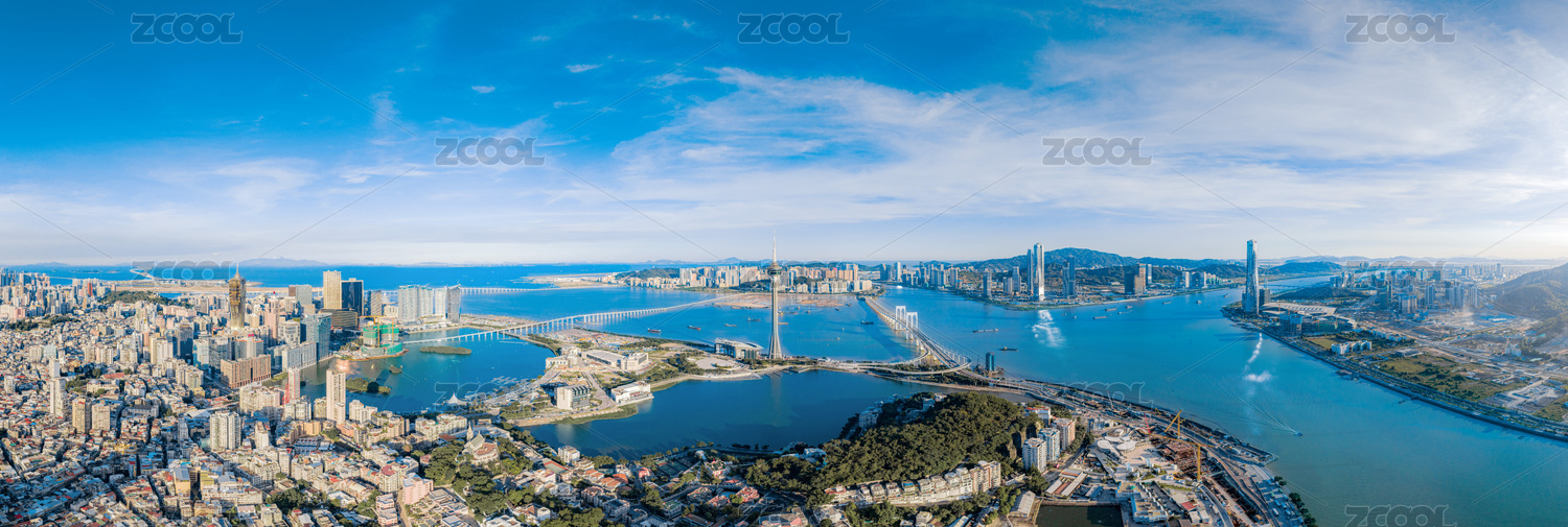 中国澳门特别行政区城市风光天际线,珠海横琴金融岛