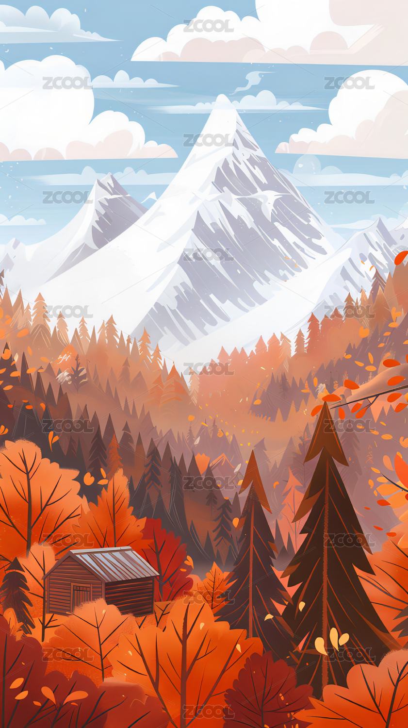 插画,风景,自然,树木,山脉,秋天,景色,户外,远山,山峰