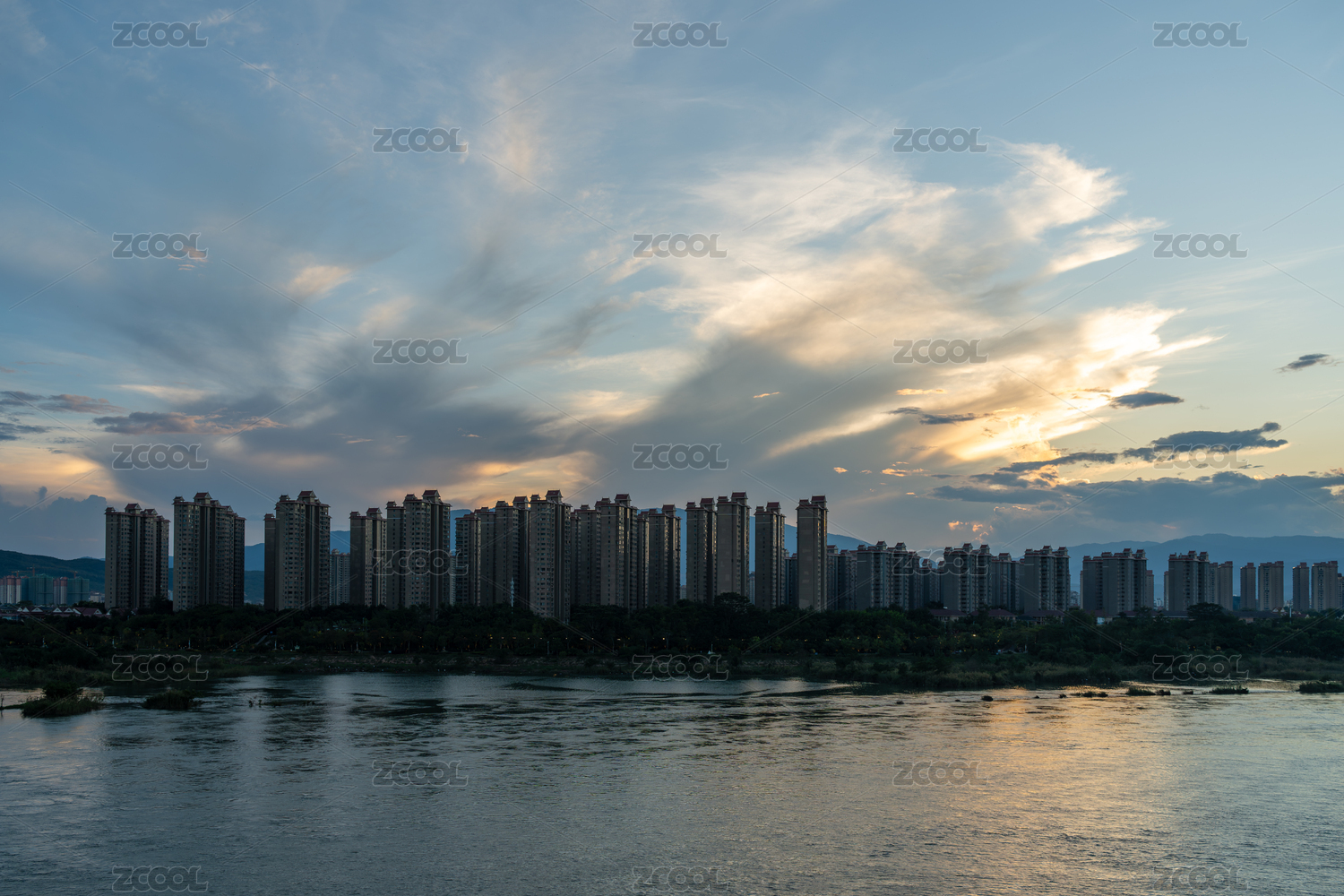 日落,城市,剪影,暮色,黄昏,天空,云彩,建筑,高楼,住宅区