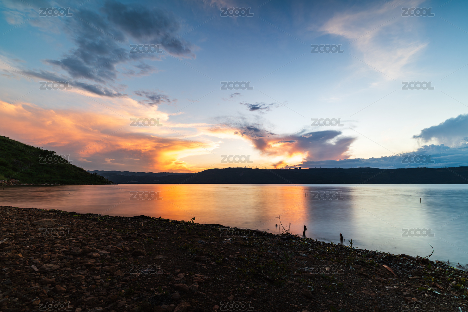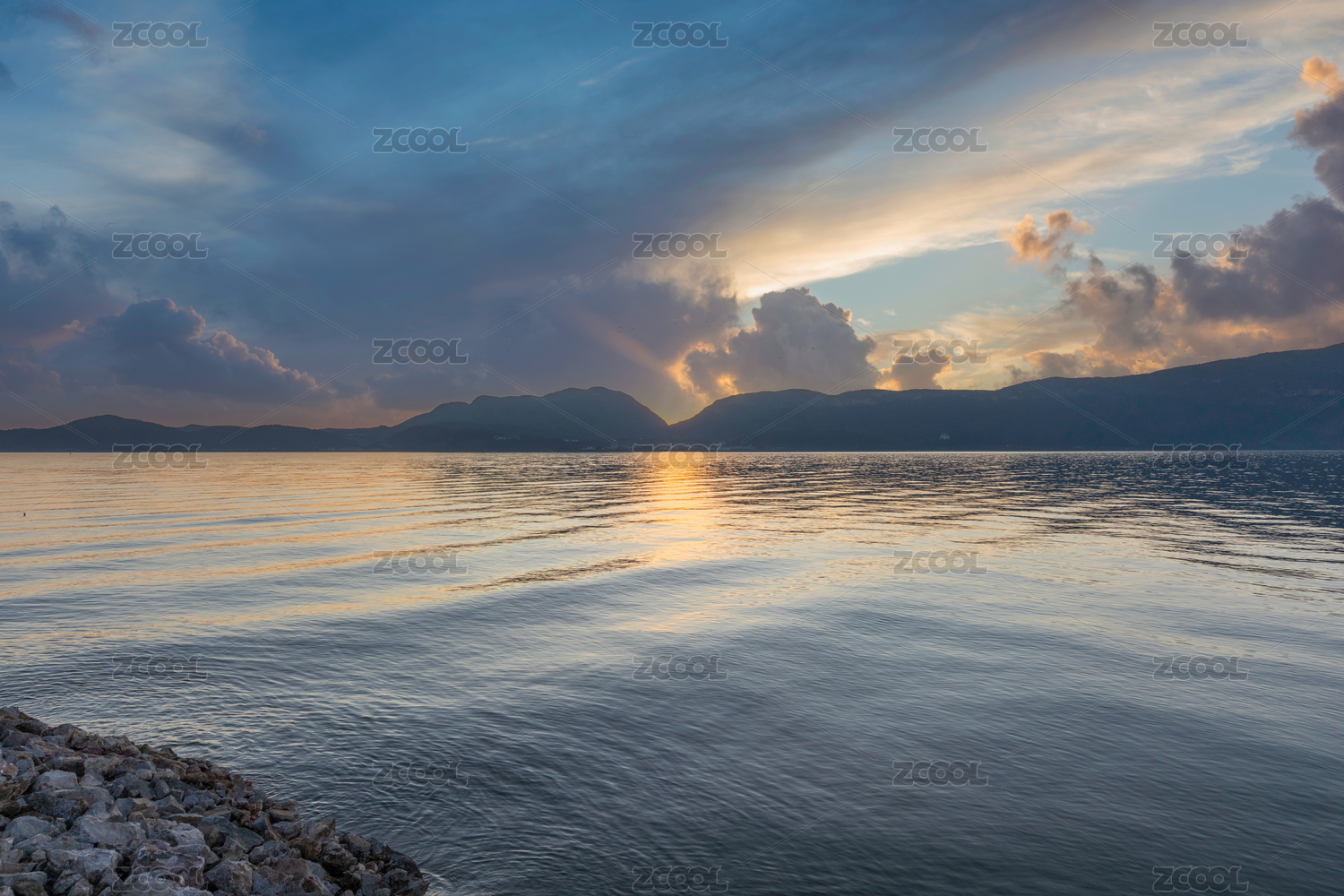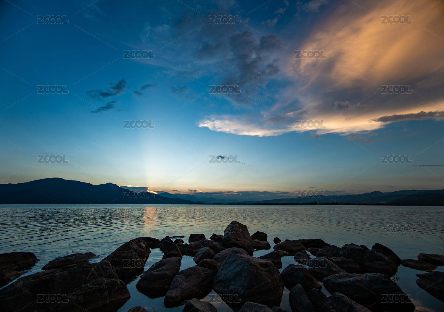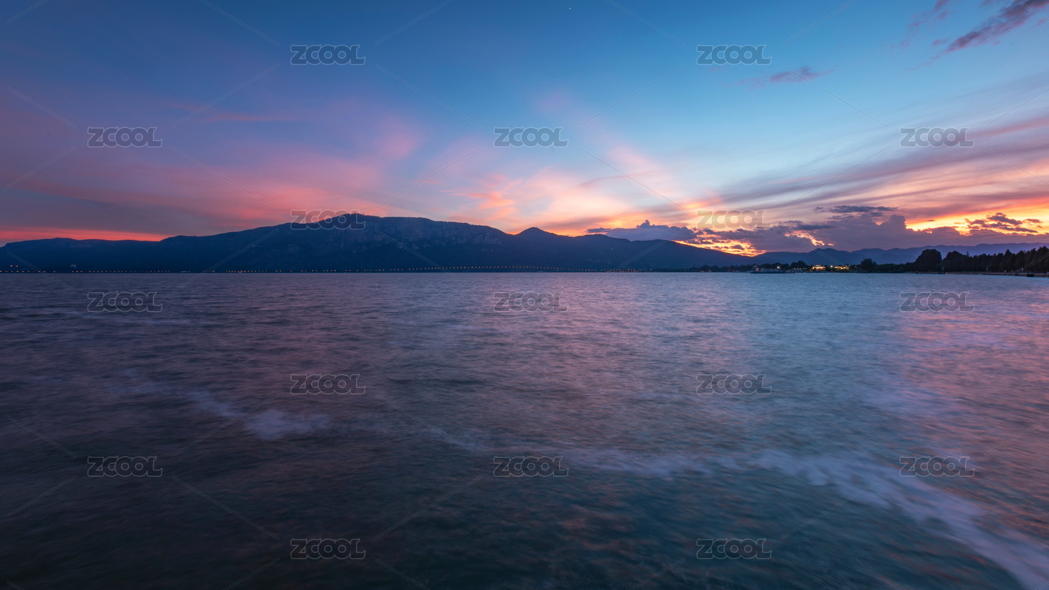 湖泊,山峦,天空,云彩,落日,余晖,自然风光,风景,水天一色,晚霞