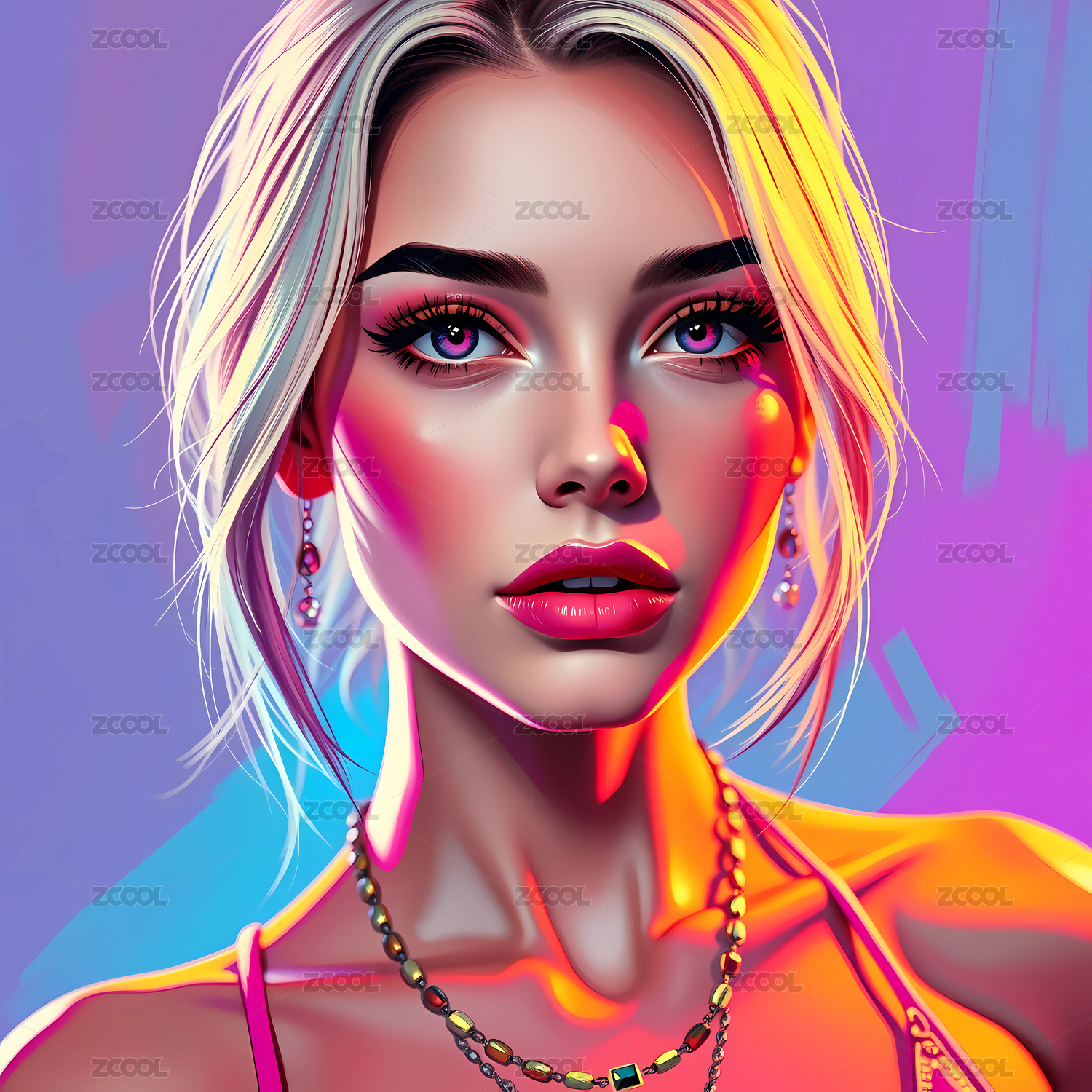 霓虹色调的女孩肖像