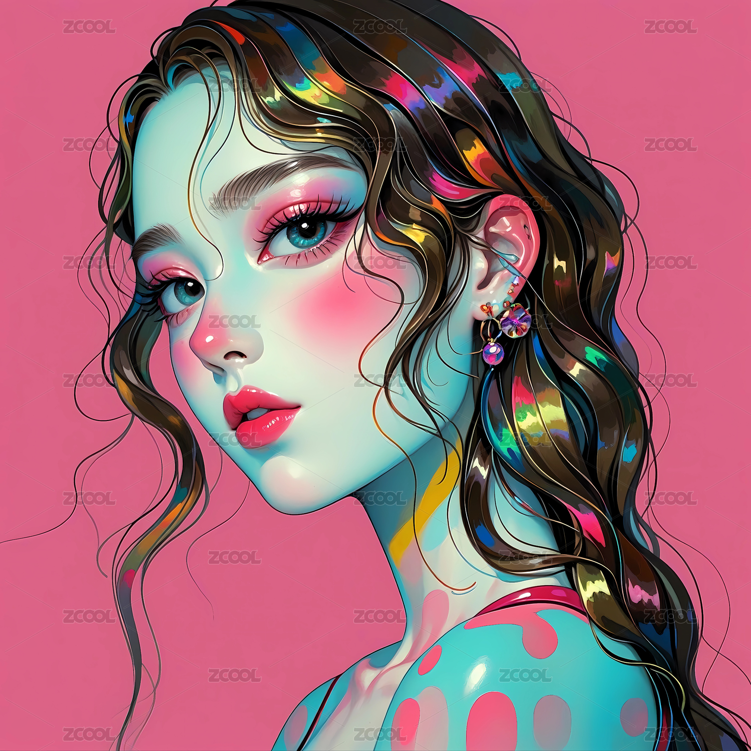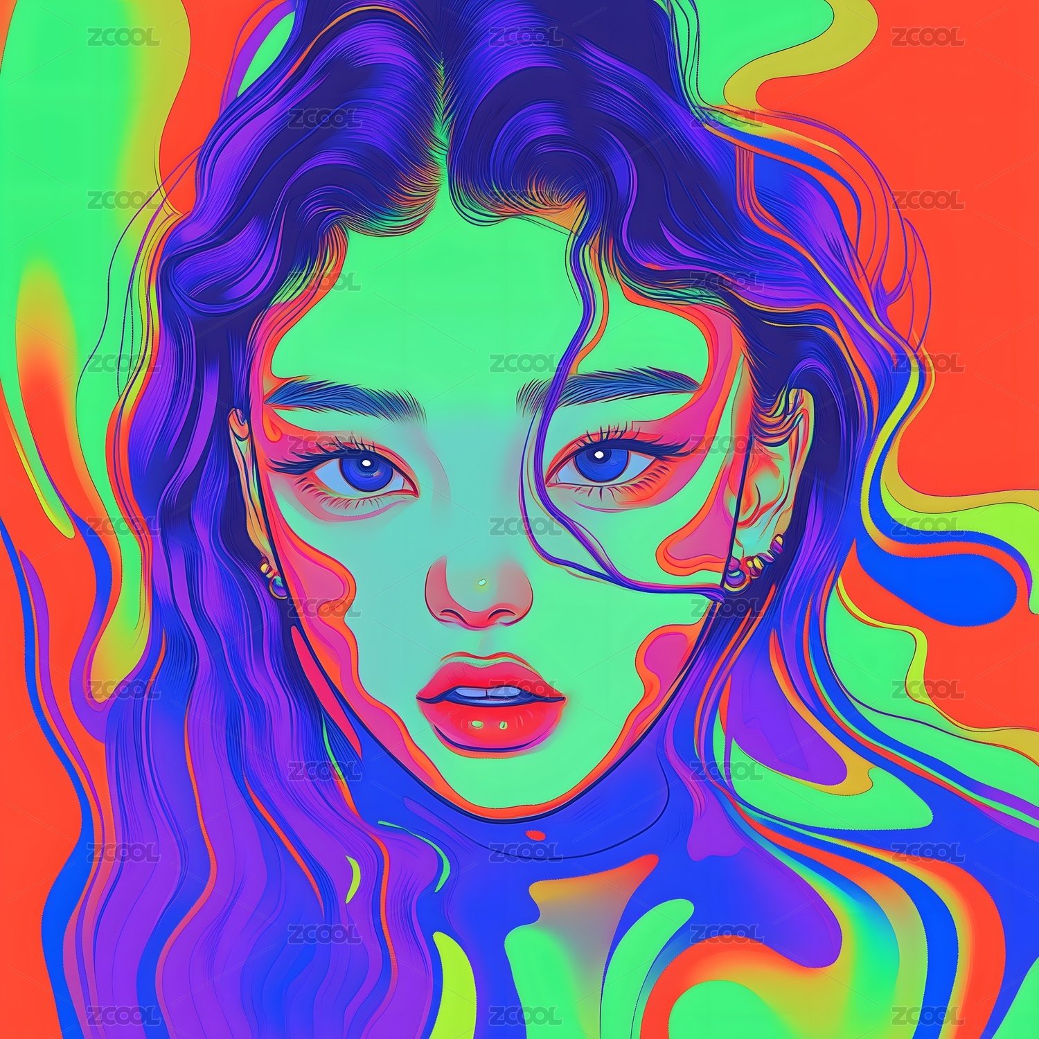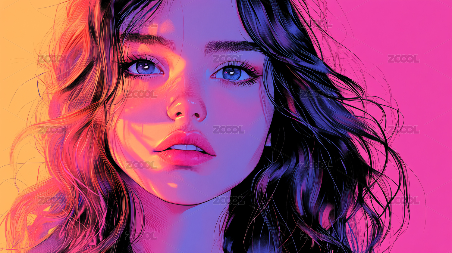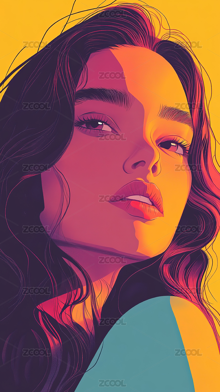 插画风格的抽象美女艺术画像