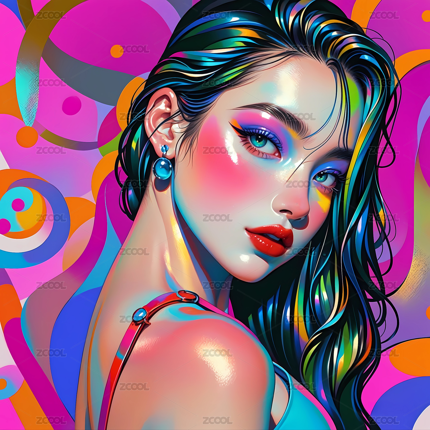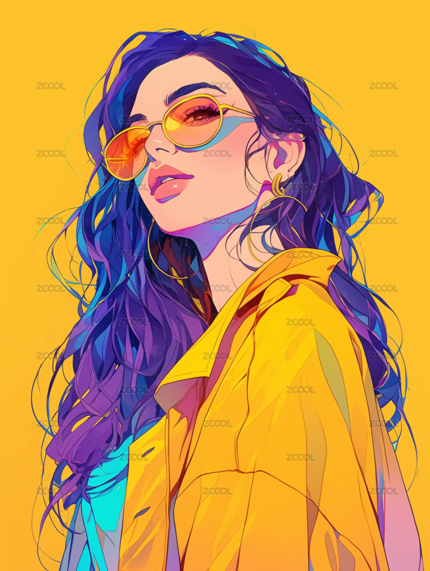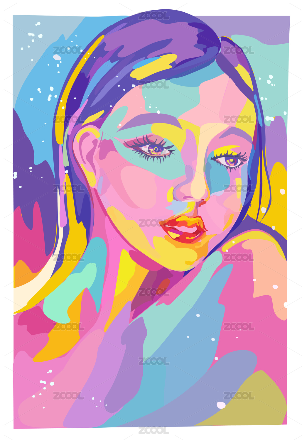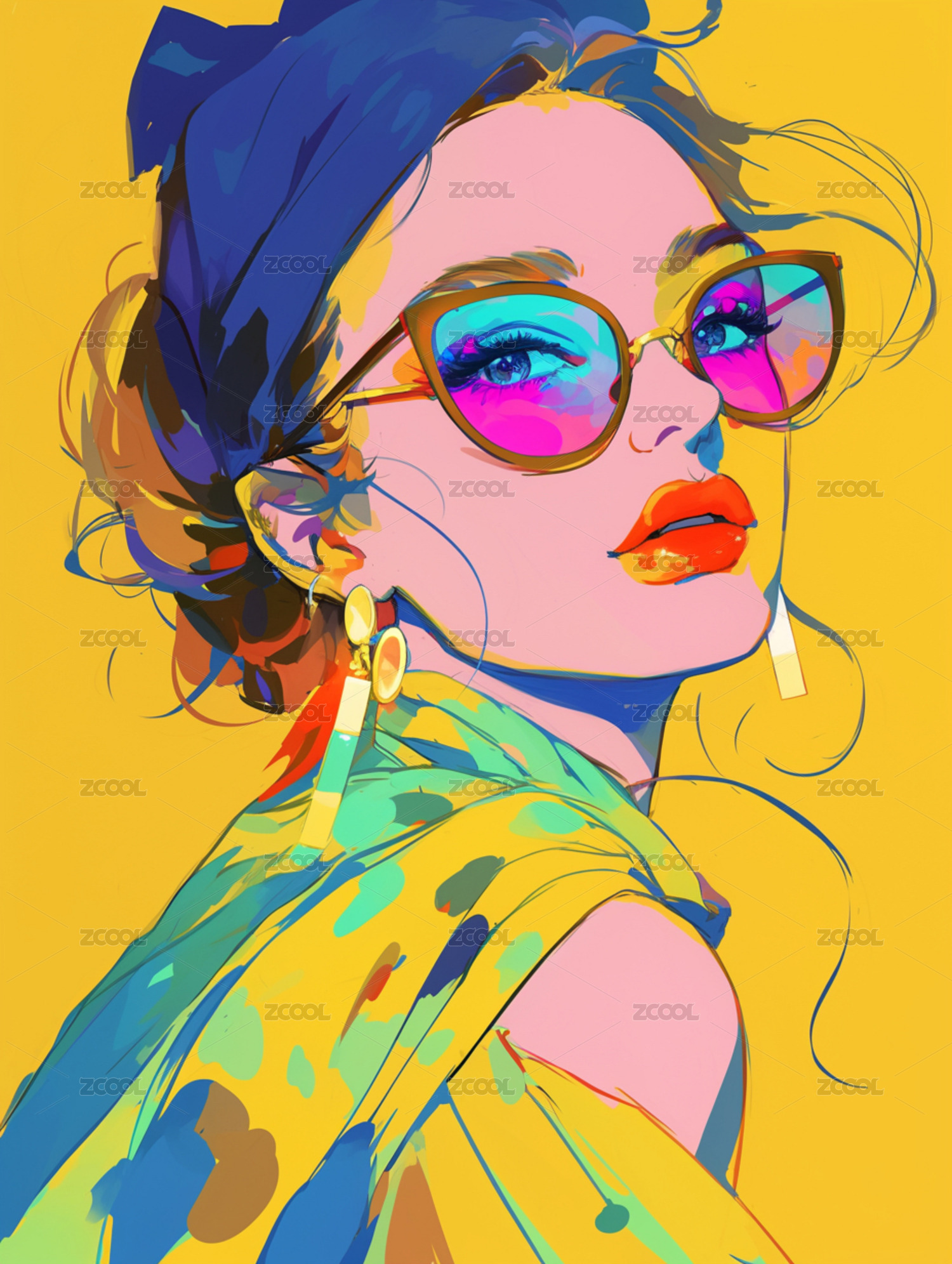 插画风格的抽象美女艺术画像