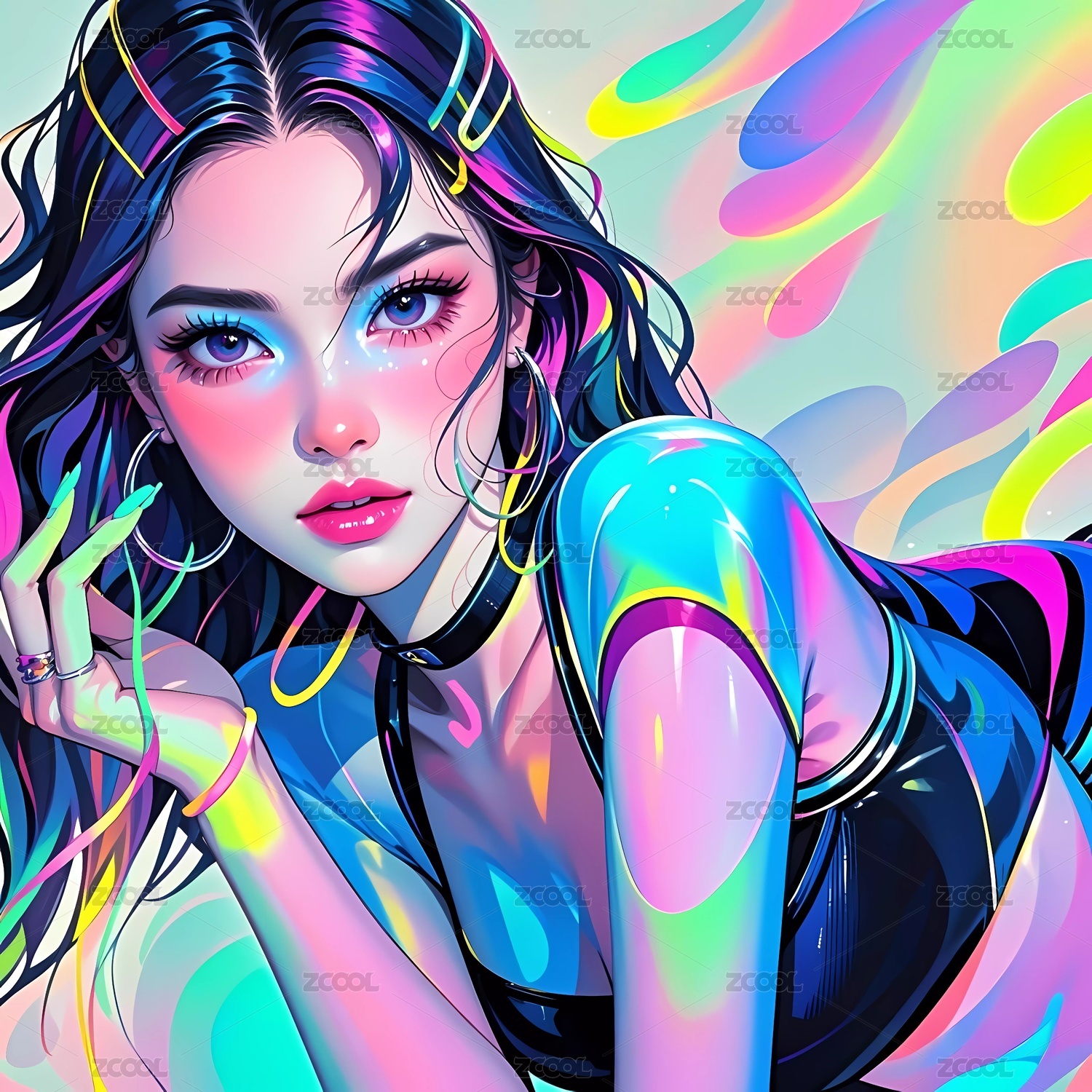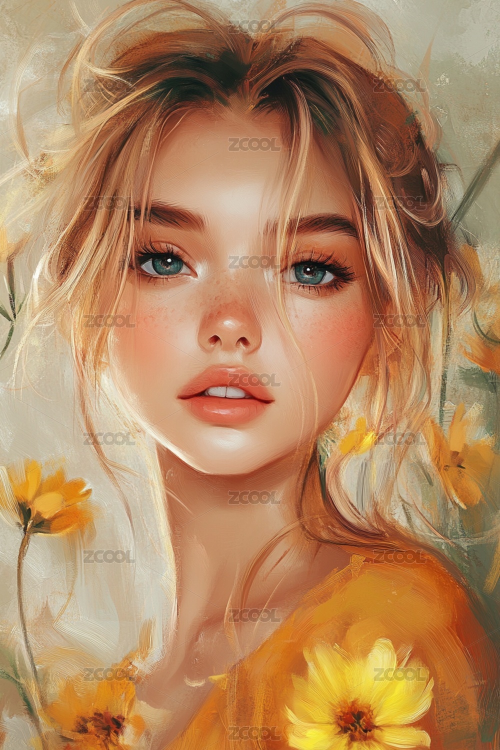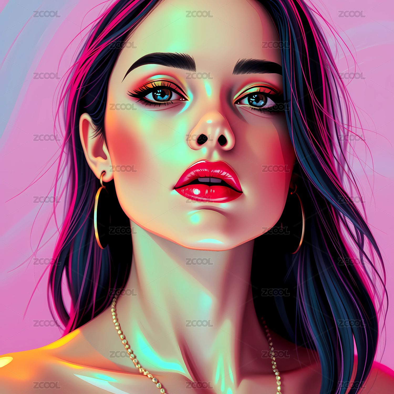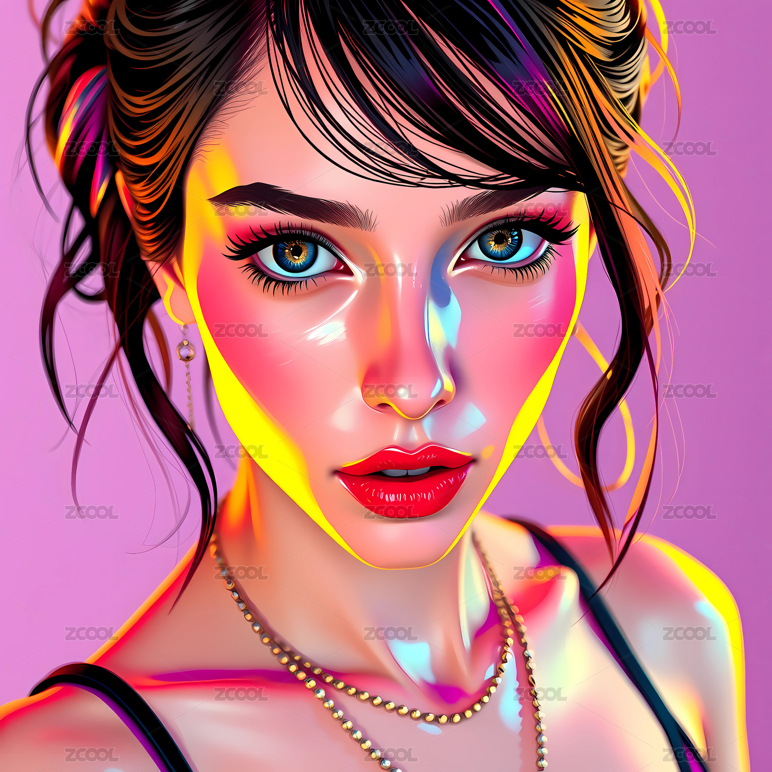 插画风格的抽象美女艺术画像