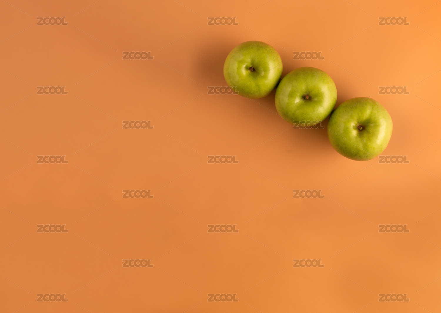 橘色背景上放着新鲜的苹果