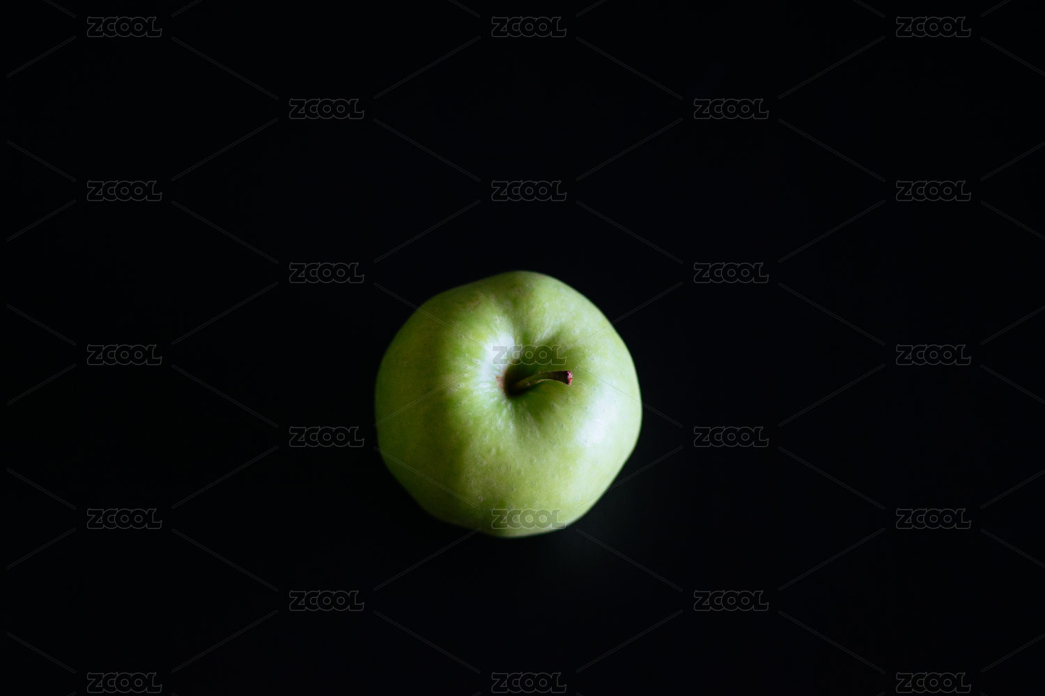 纯黑色背景,新鲜的青苹果素材