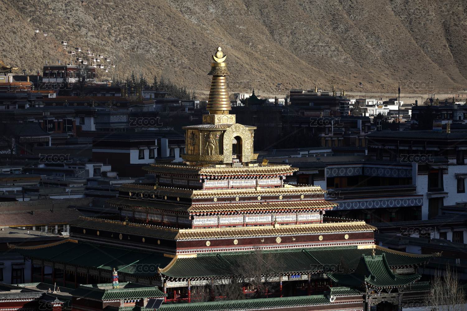 甘肃甘南夏河拉卜楞寺的佛塔寺庙宗教建筑