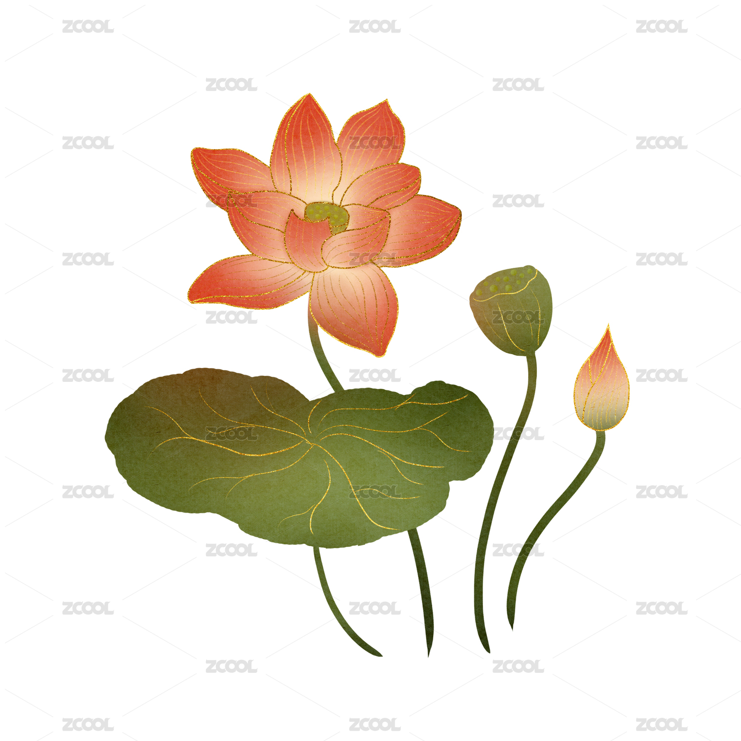 荷花,花朵,荷叶,绿色,渐变,线条,创意,国风,国潮