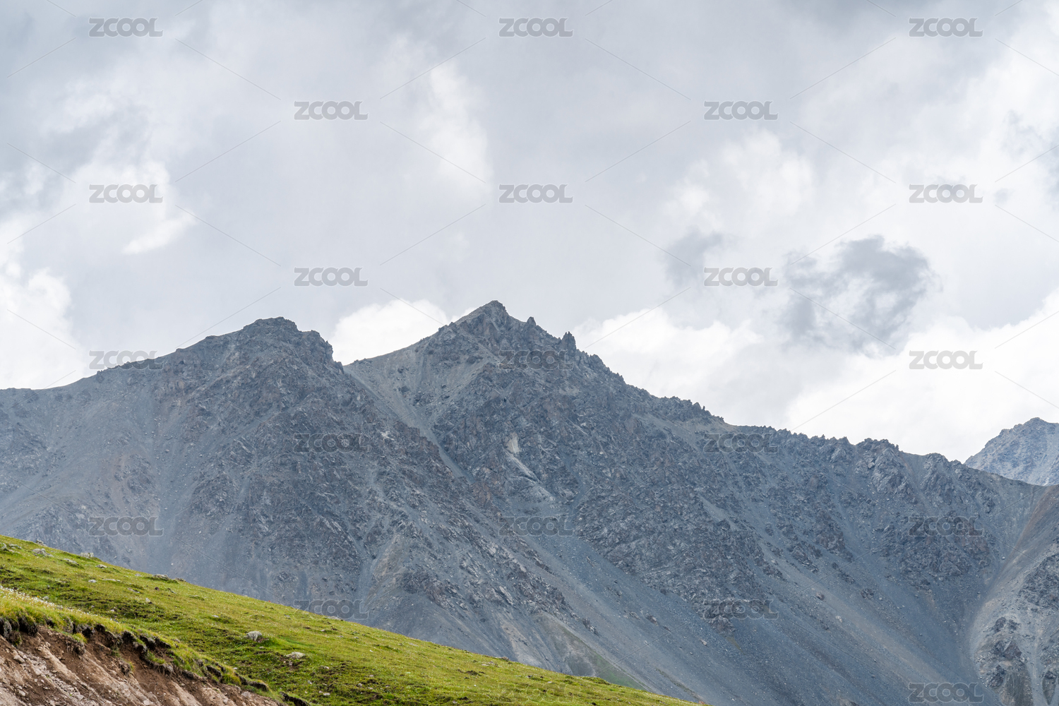 中国新疆独库公路沿线雨后云雾缭绕高山景观