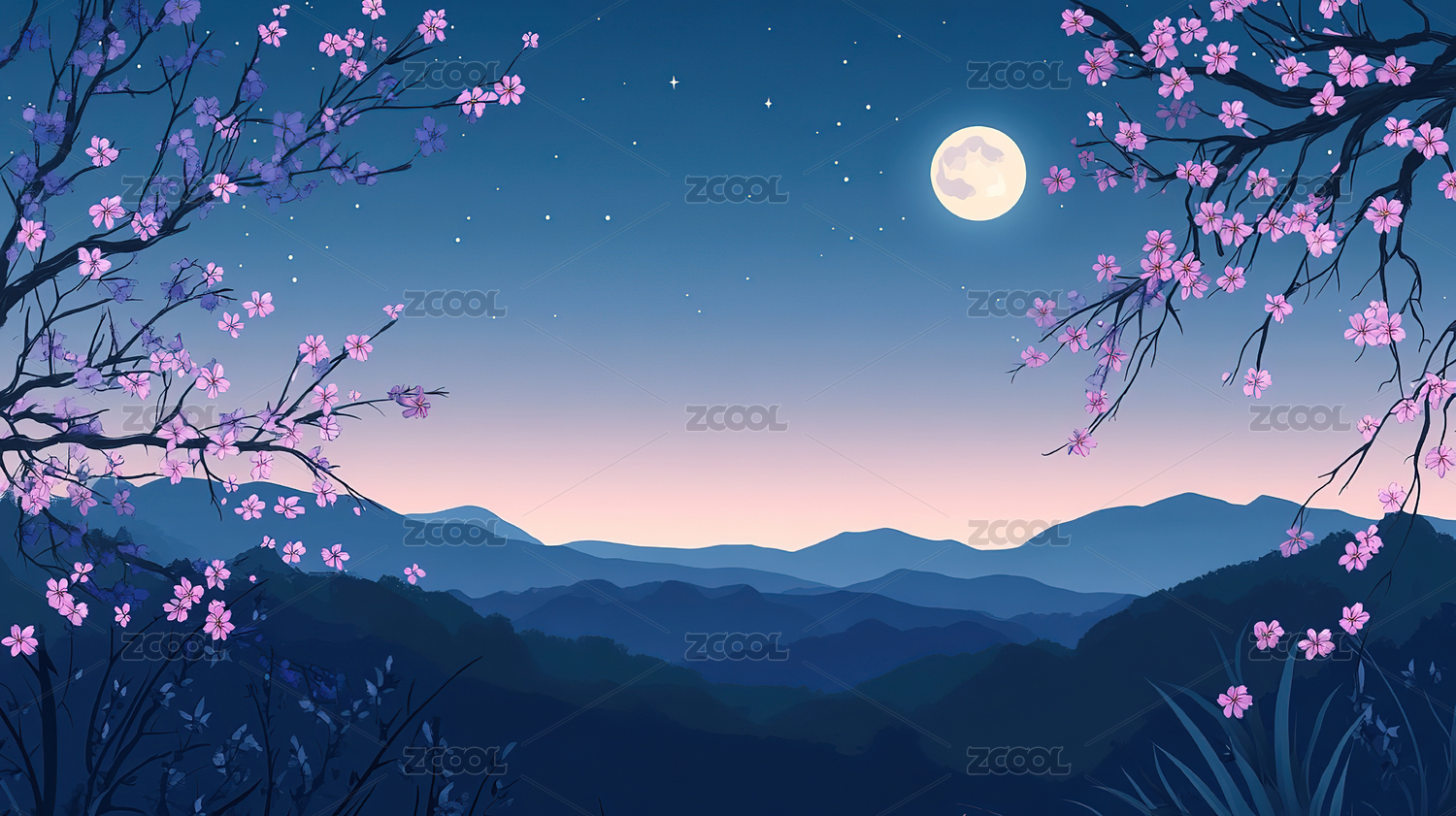 AIGC202403,传统,文化,中秋节,节日,插画,插图,风格,干净,简洁
