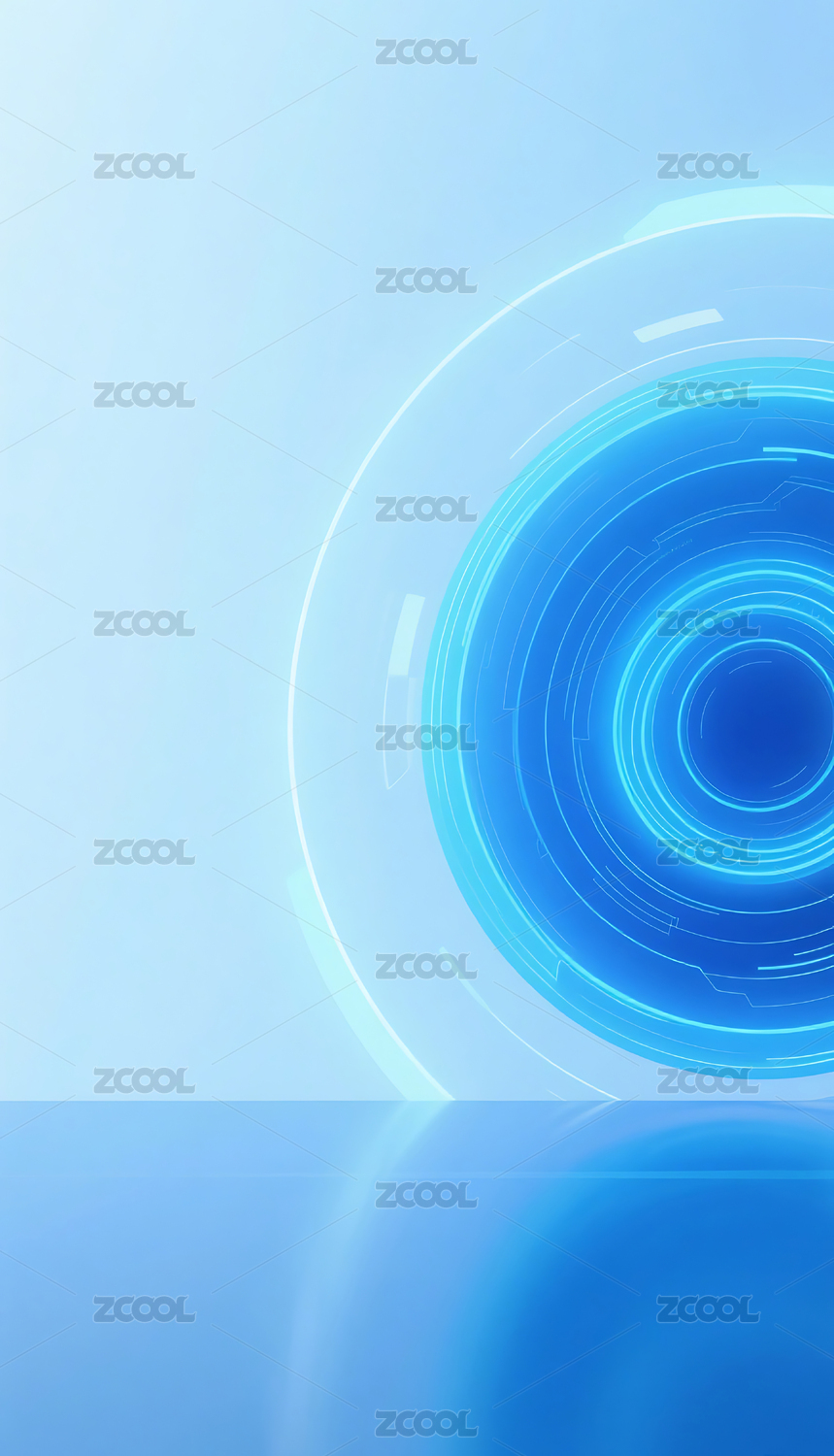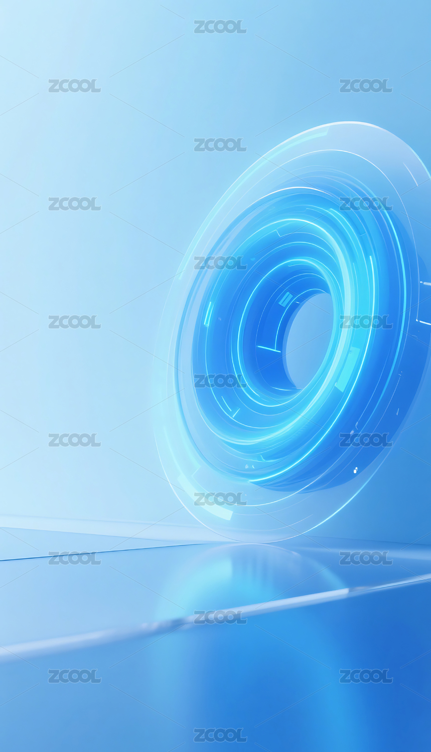 蓝色光环的圆形装置与清新科技感