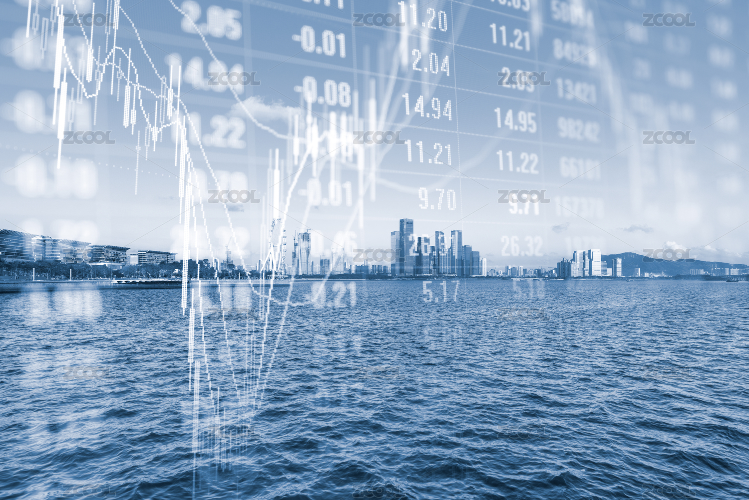 中国广东深圳城市建筑景观和金融股市证券走势概念