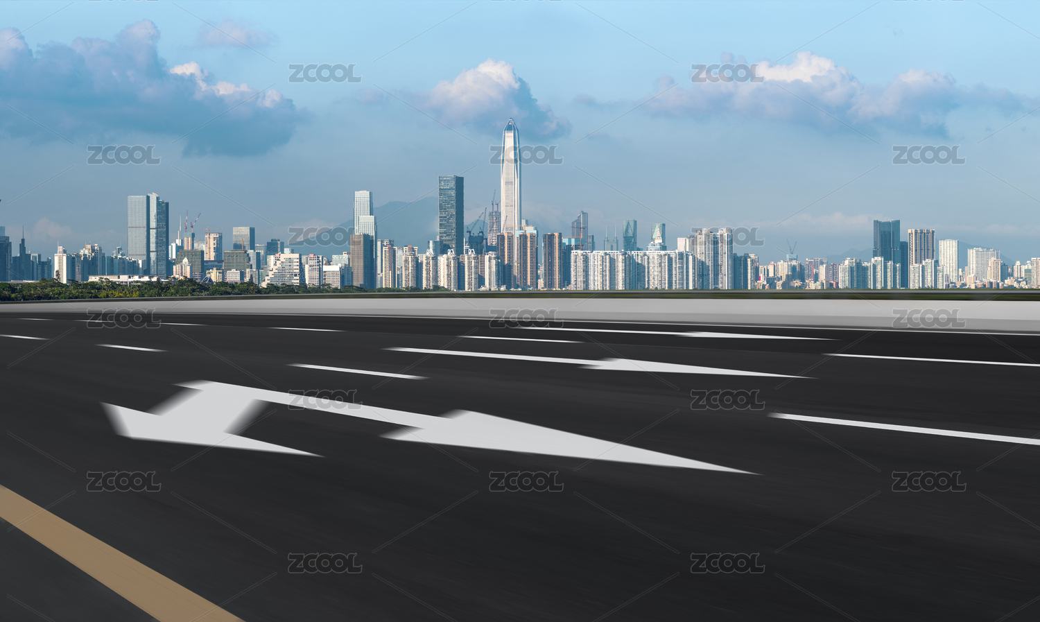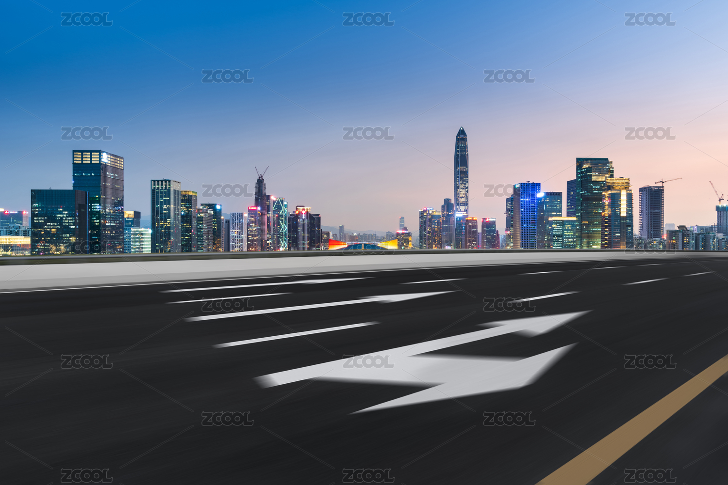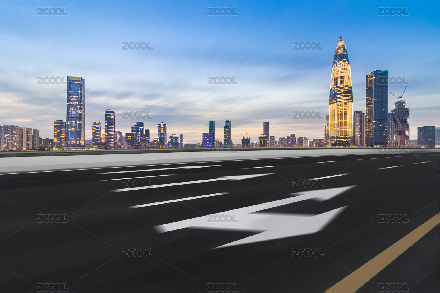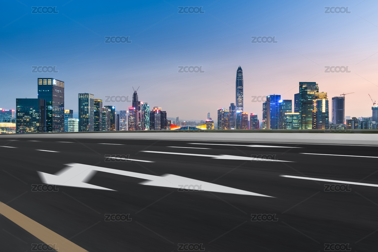 中国广东深圳市区城市天际线和空白无人的机动车道