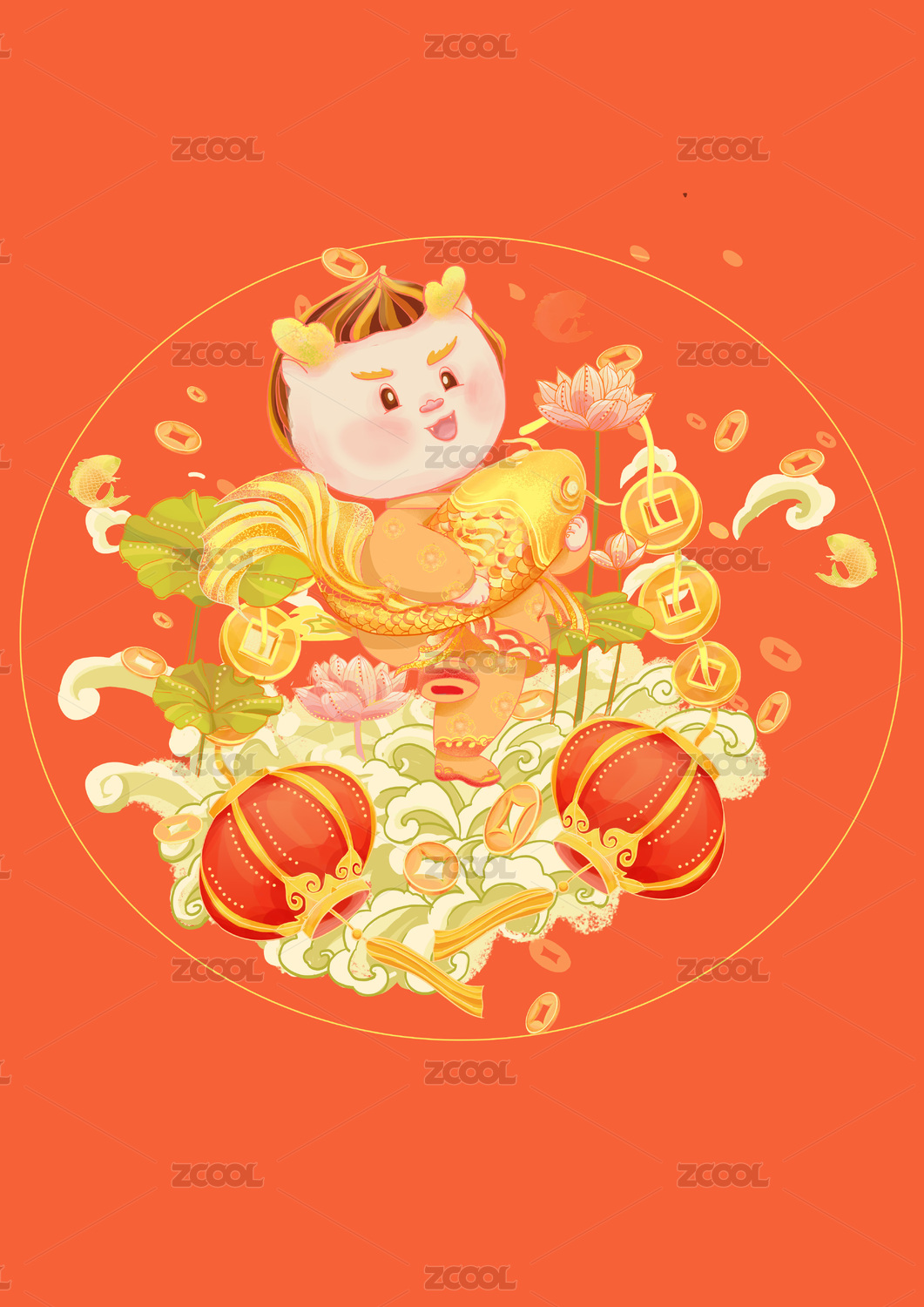 小孩骑着鲤鱼年年有余岁岁平安年画方版