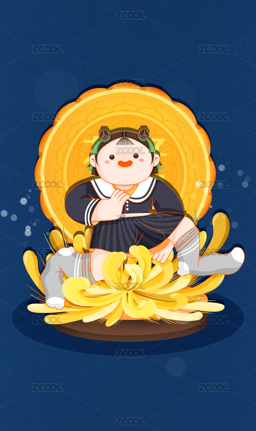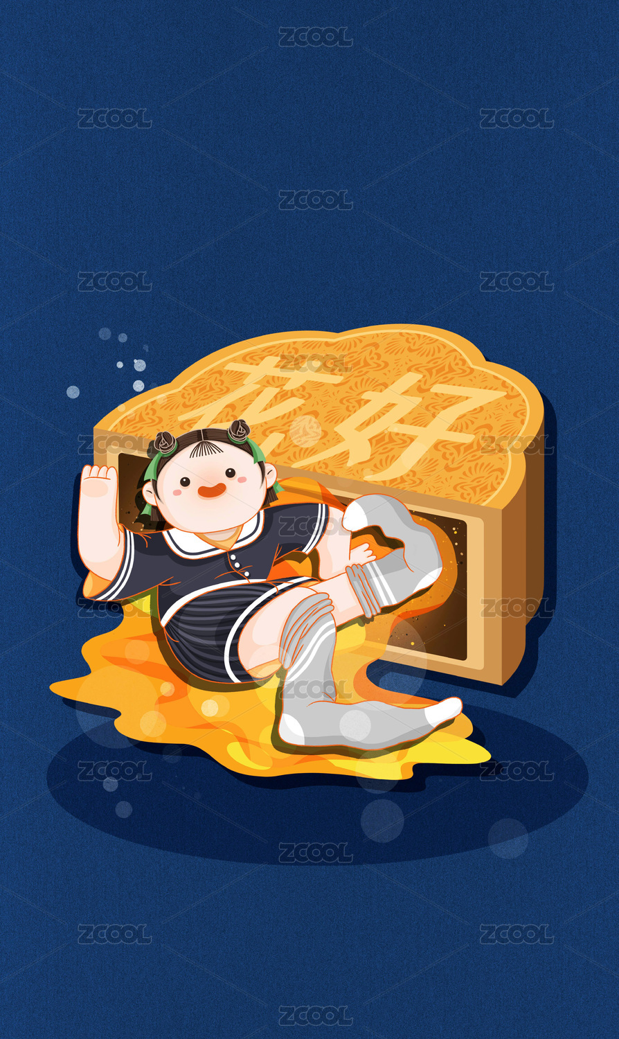 中秋,元素,月亮,主题,可爱,系列,原创,插画,组合,习俗