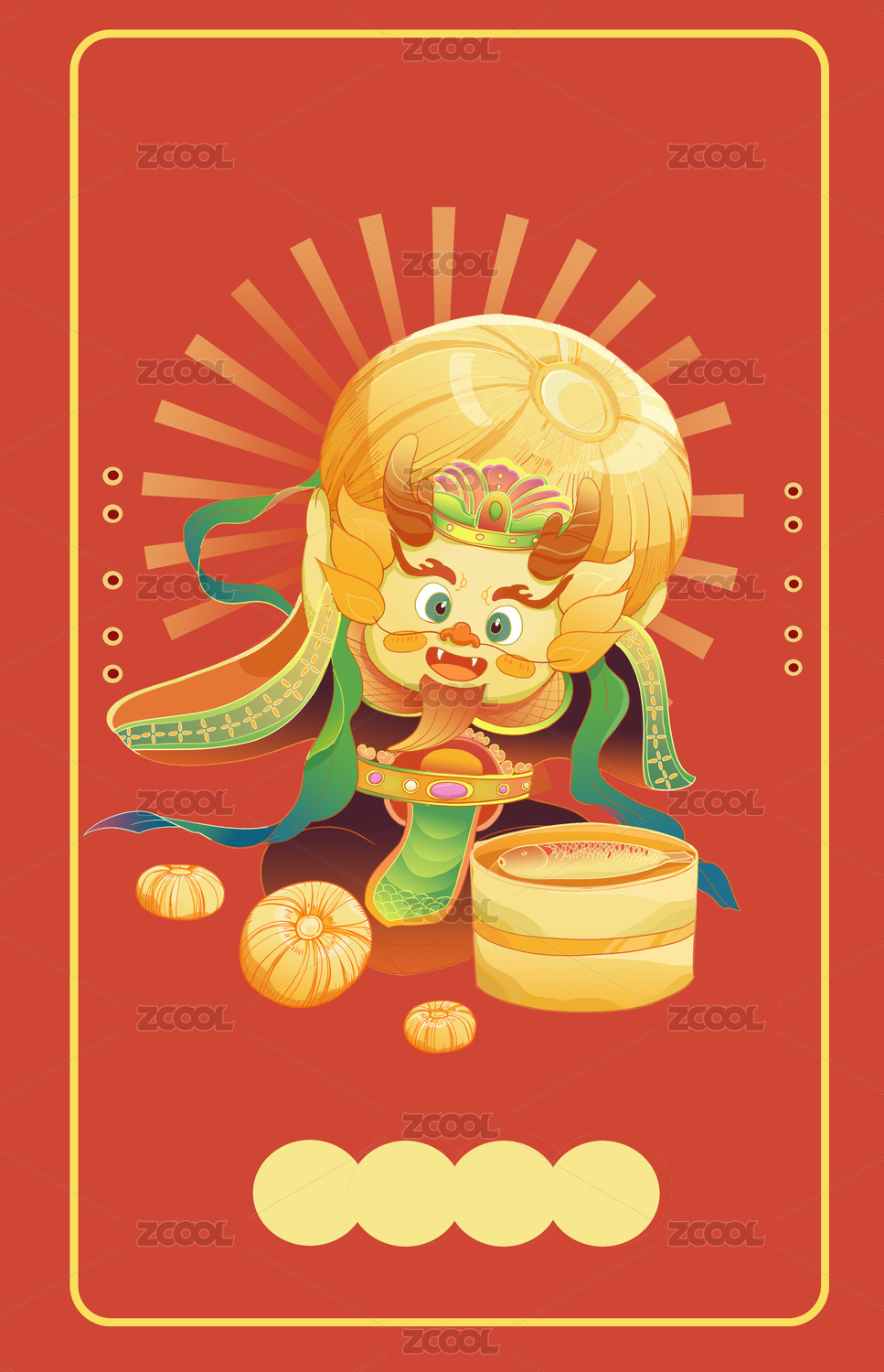 春节小年灶王喜庆红色背景竖版矢量插画海报
