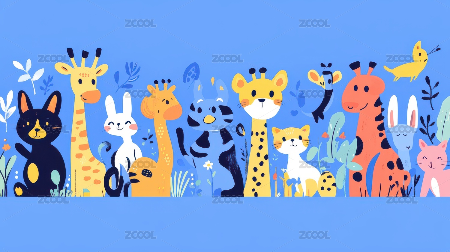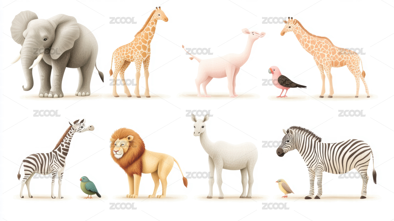 卡通可爱狮子长颈鹿斑马等动物组插画