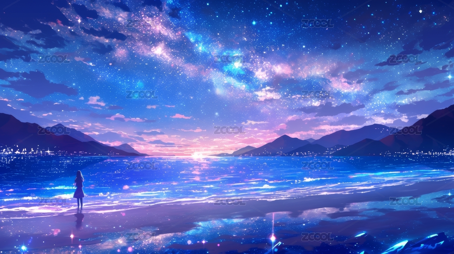 星空天空星云唯美震撼壁纸场景夜晚人物