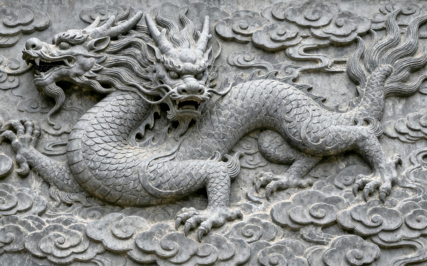 故宫红墙接黄琉璃瓦影壁龙纹浮雕