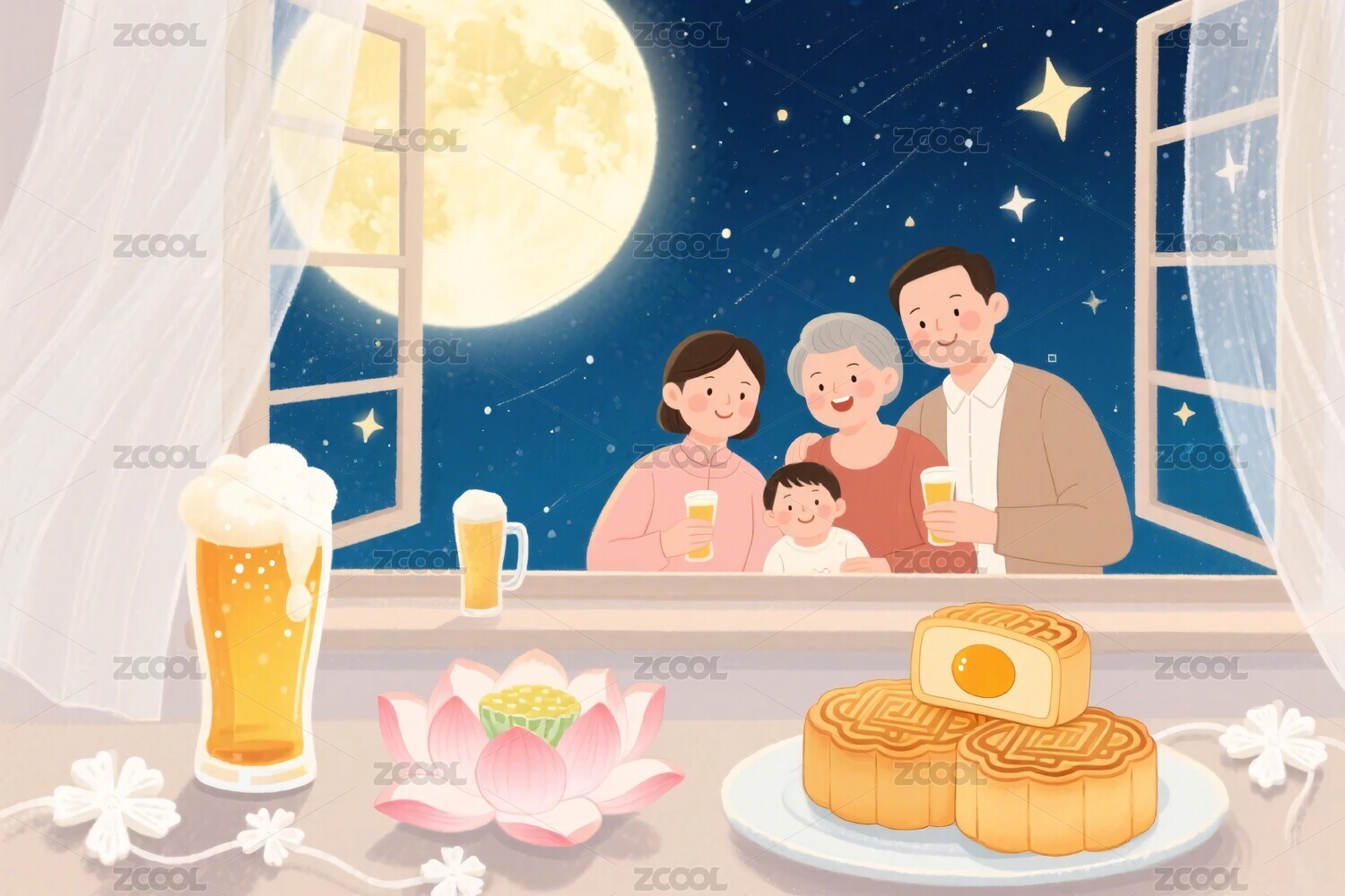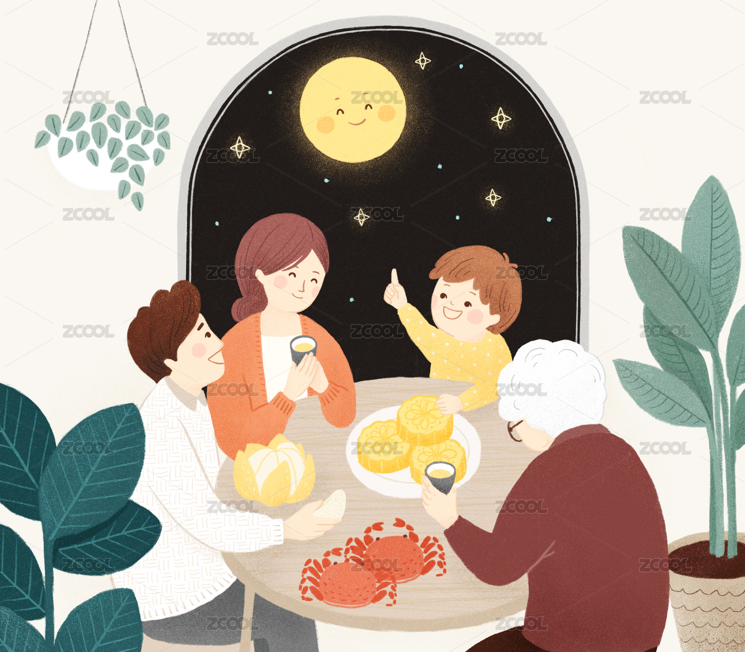 家人,团圆,吃月饼,家,习俗,室内,夜晚,温馨,节日,孩子