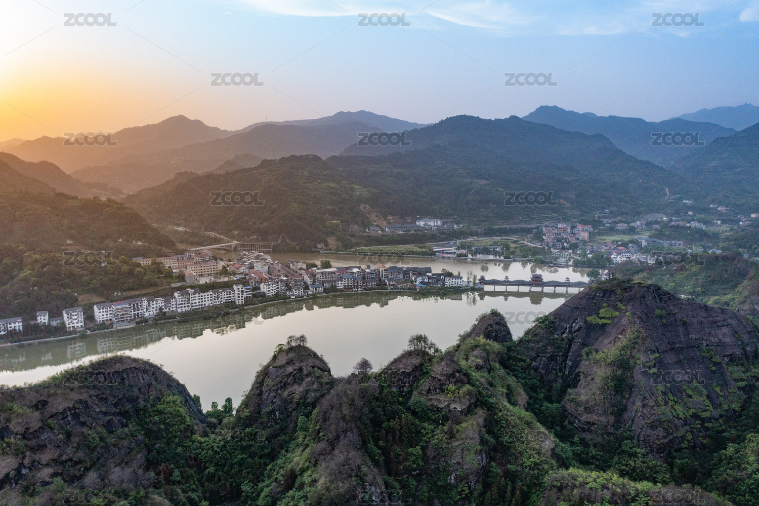 航拍中国浙江丽水傍晚时分的古堰画乡