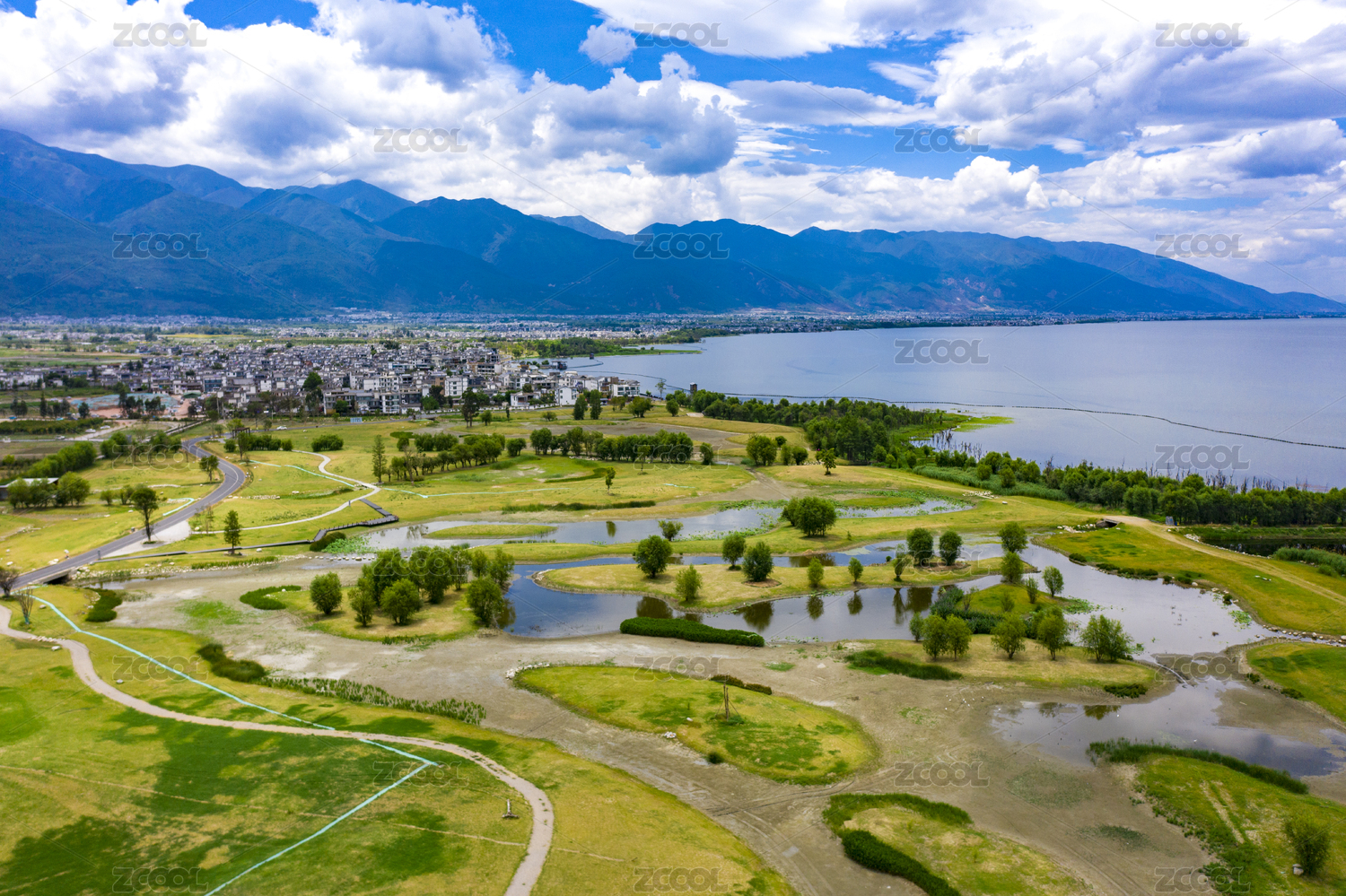 航拍,拉市海,丽江,水域,湖泊,高原湖,蓝天白云,环保,青山绿水,湿地公园