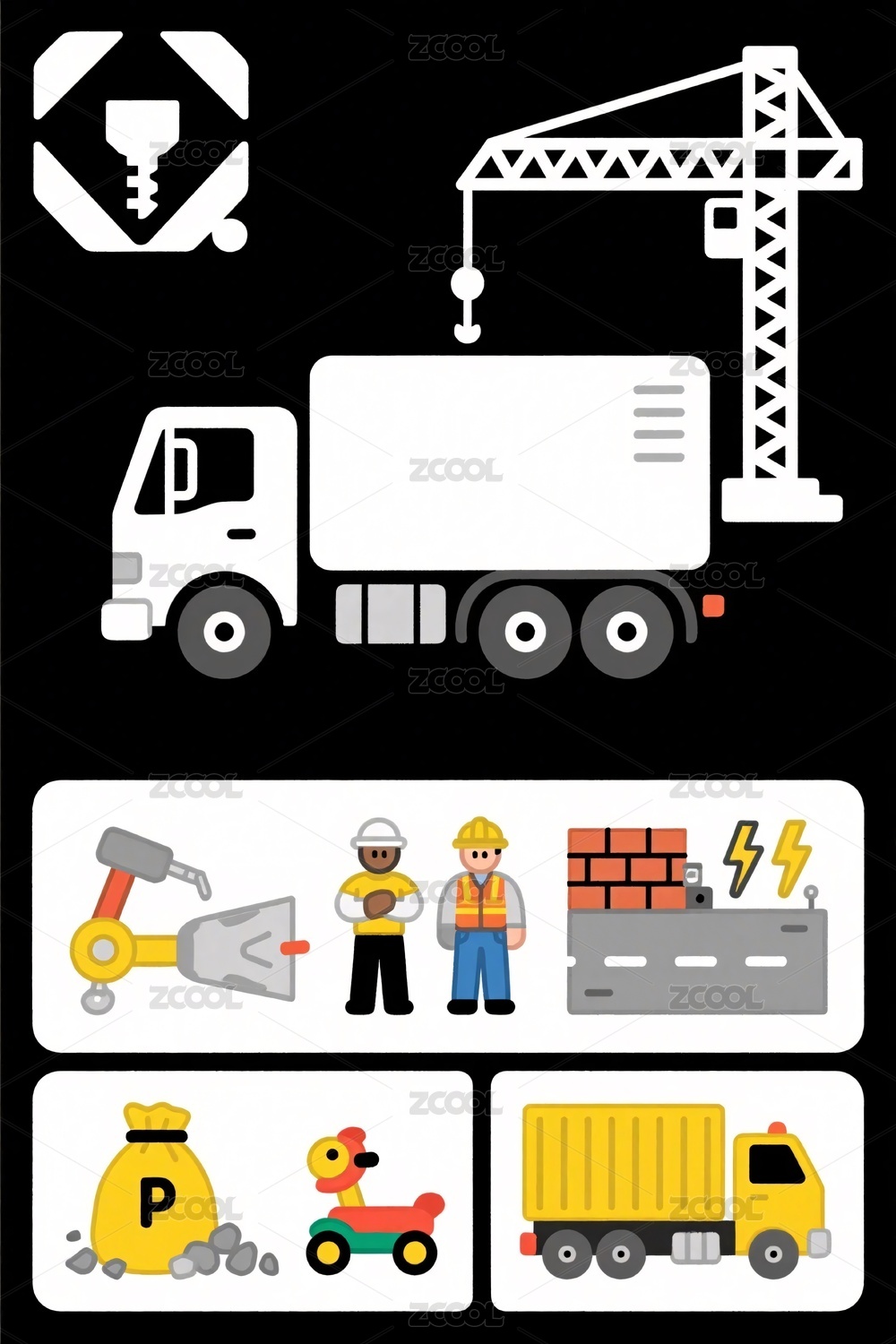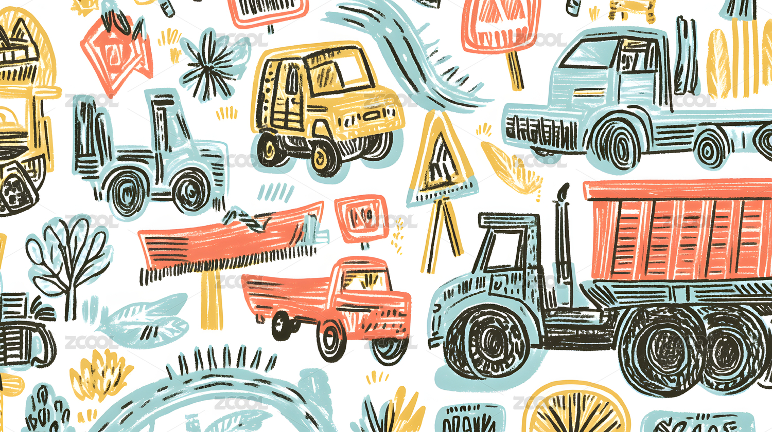 矢量,无缝,儿童,推土机,吊车,卡车,路障,施工队,工地