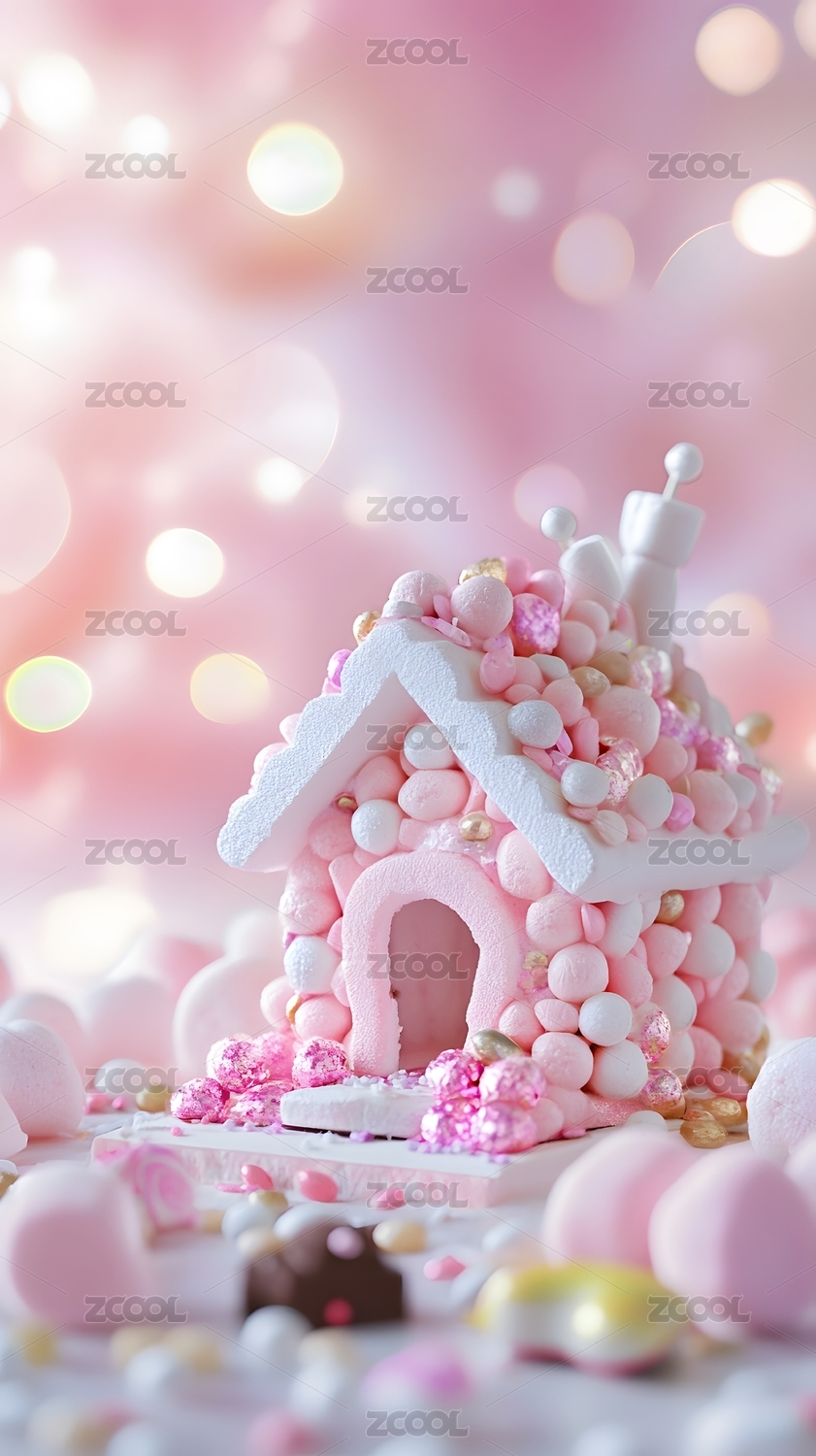 粉色棉花糖姜饼屋