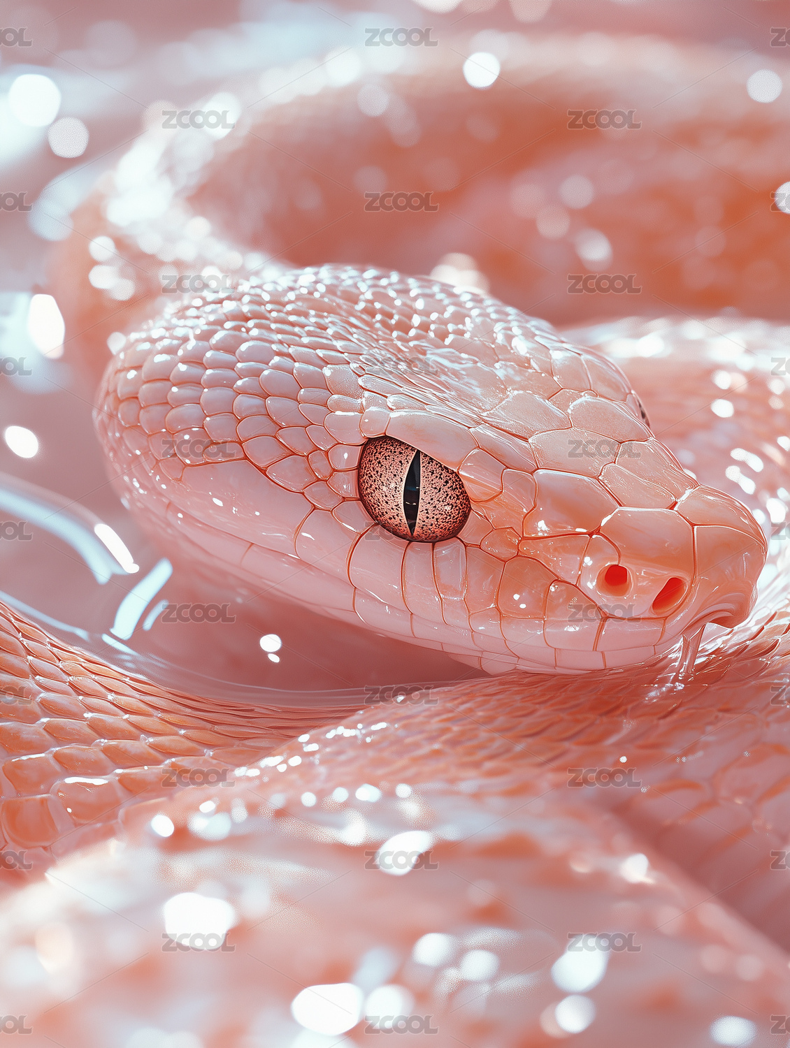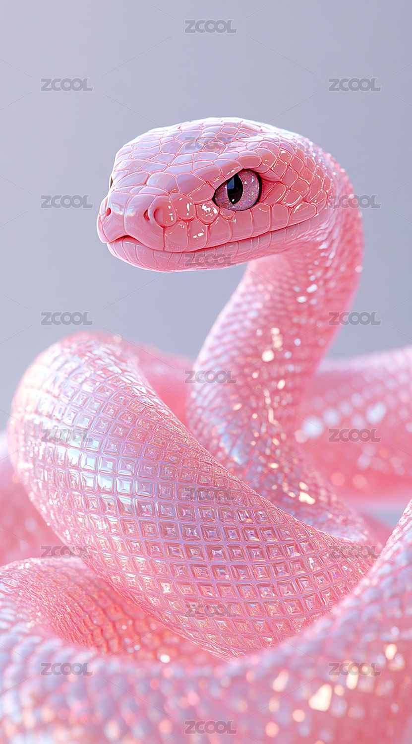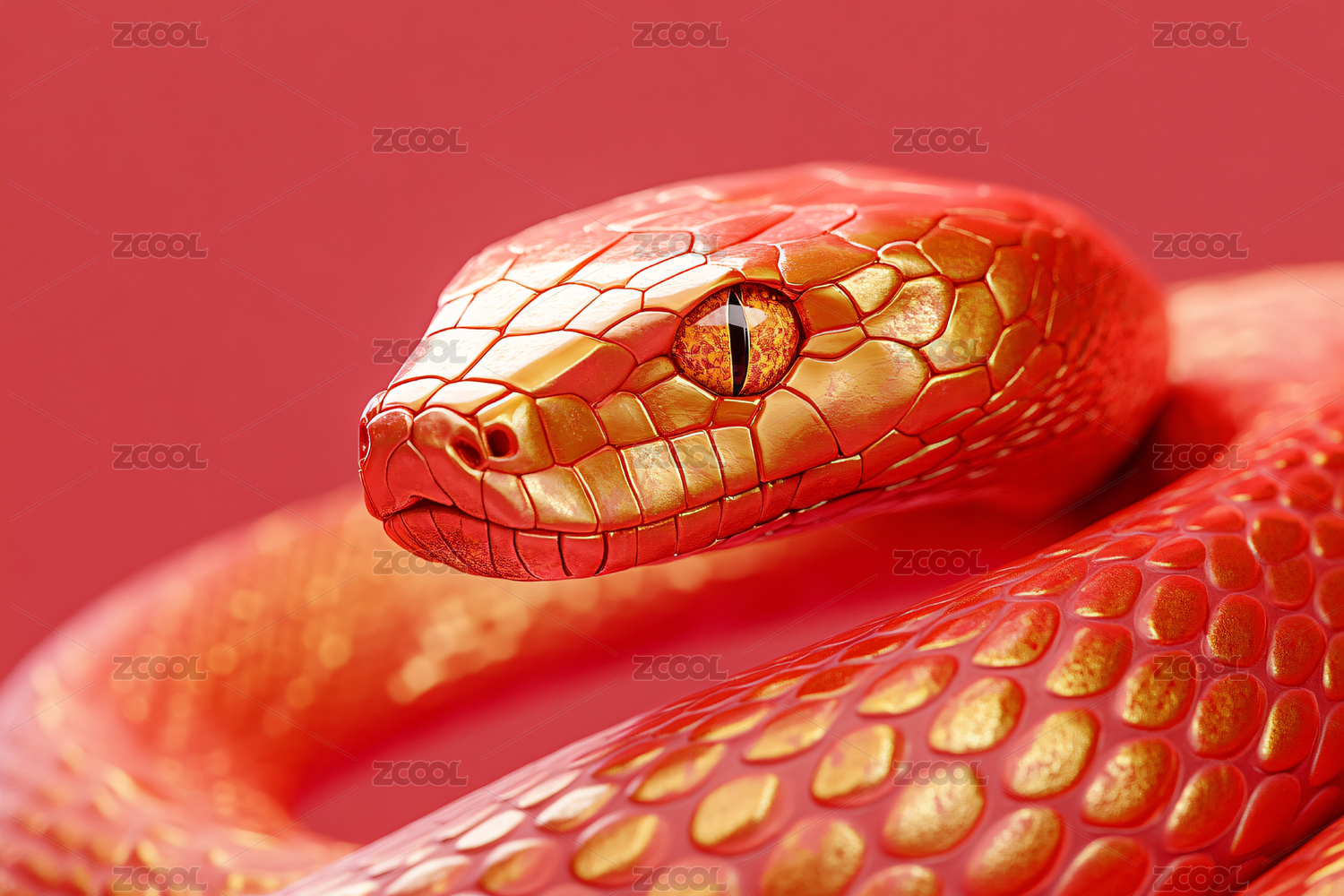 清新明亮户外花丛中金色属相蛇3D立体插画