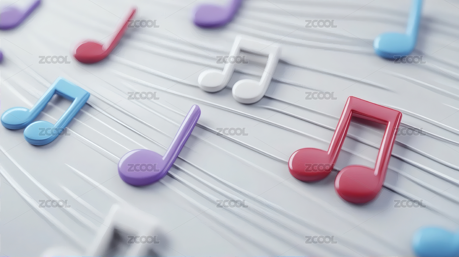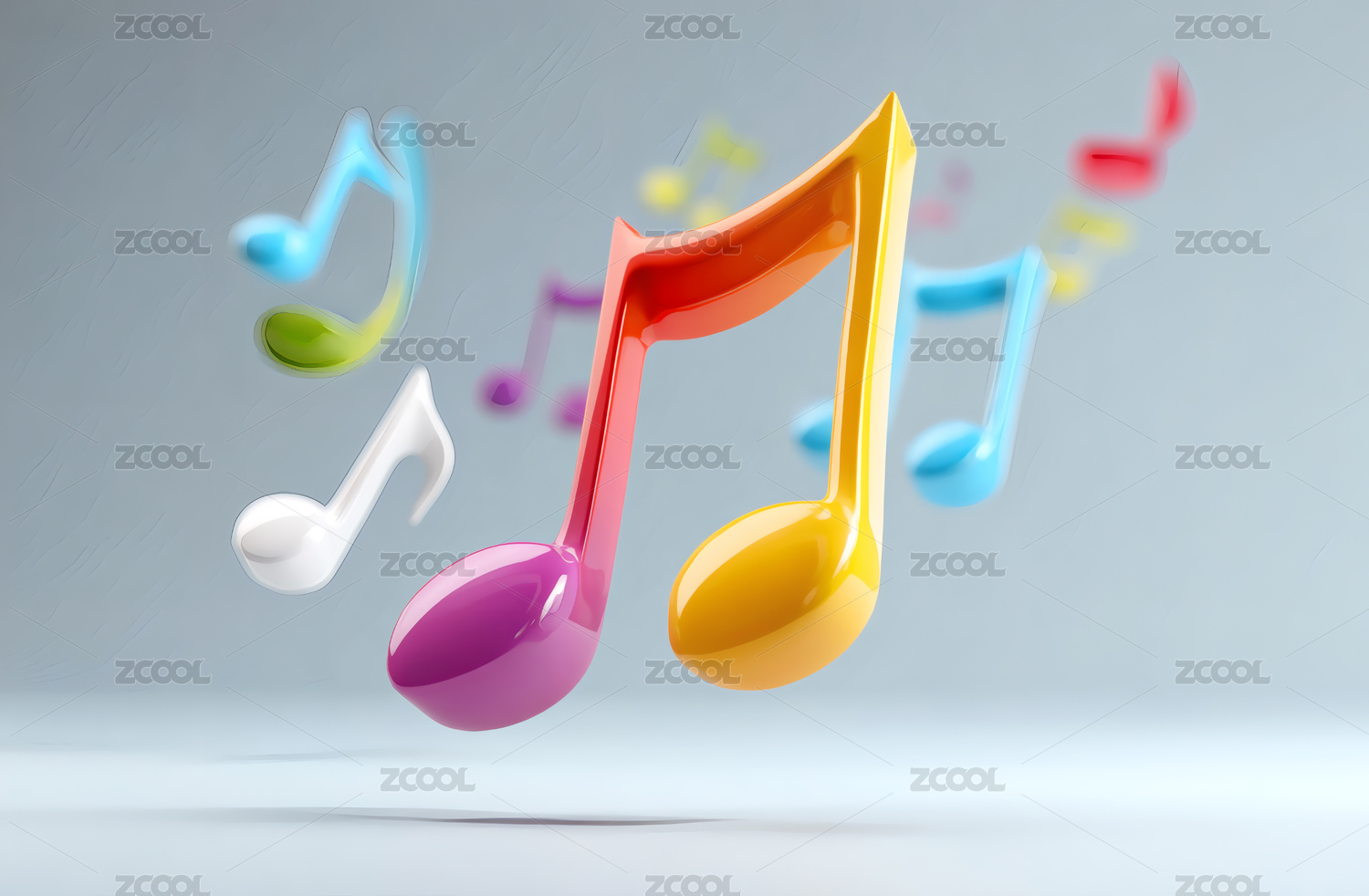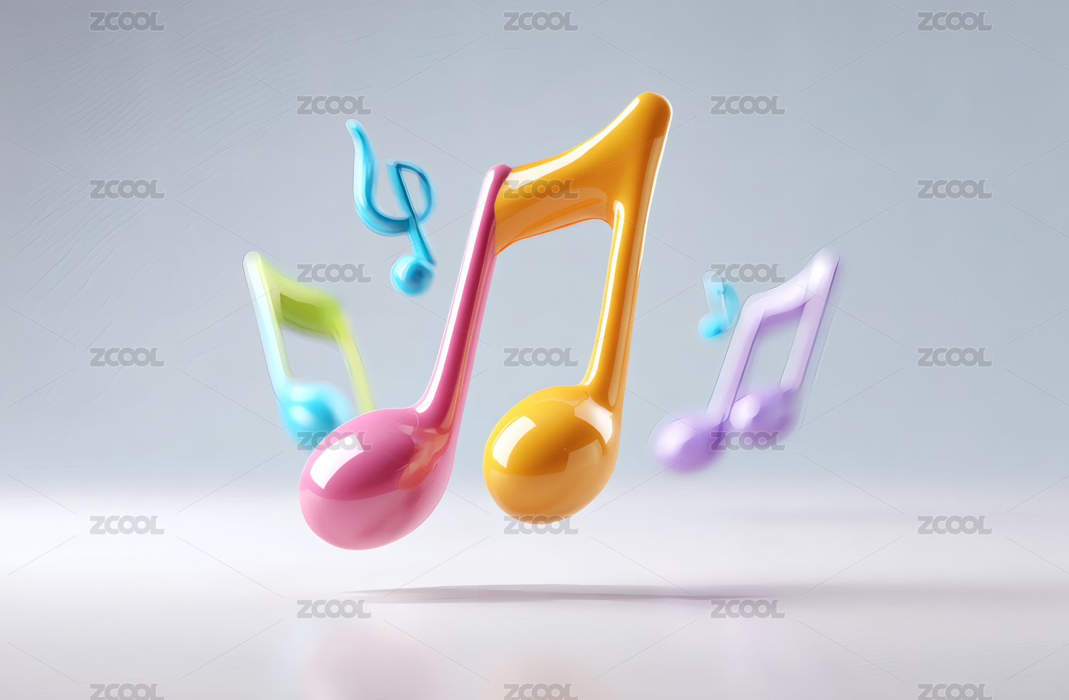 3D马卡龙多彩音乐音符形状艺术背景插画