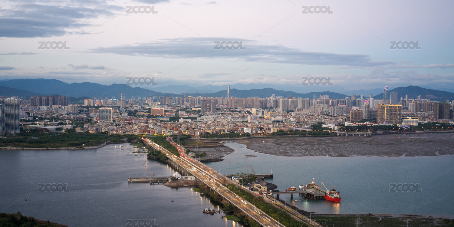 厦门集美城市天际线与新阳大桥的壮丽景色