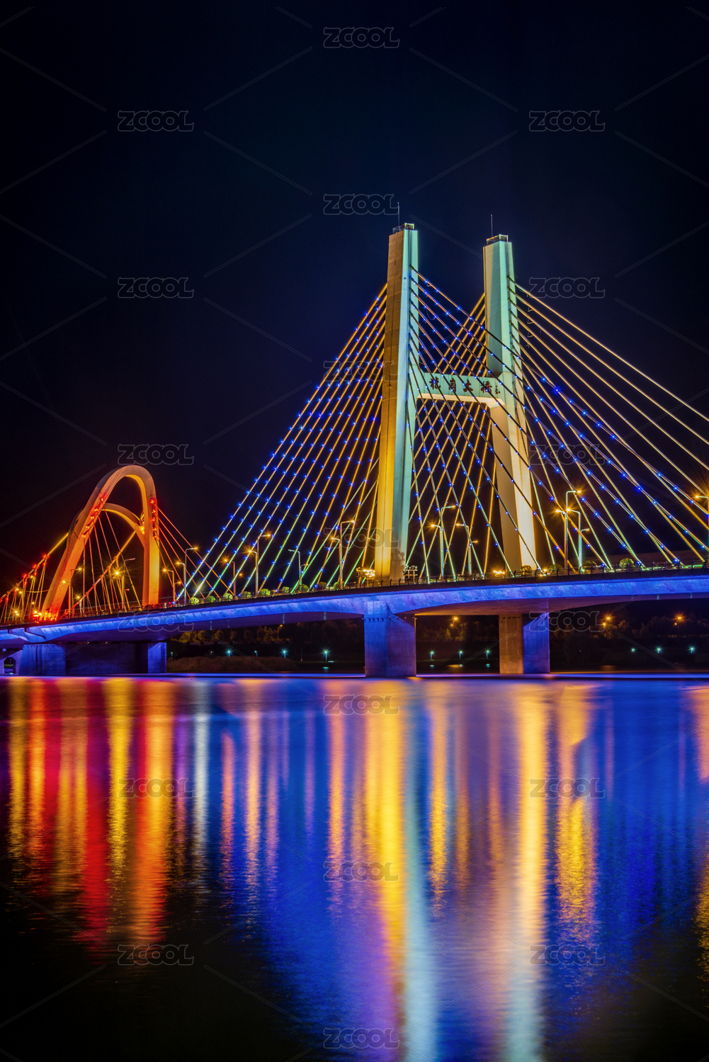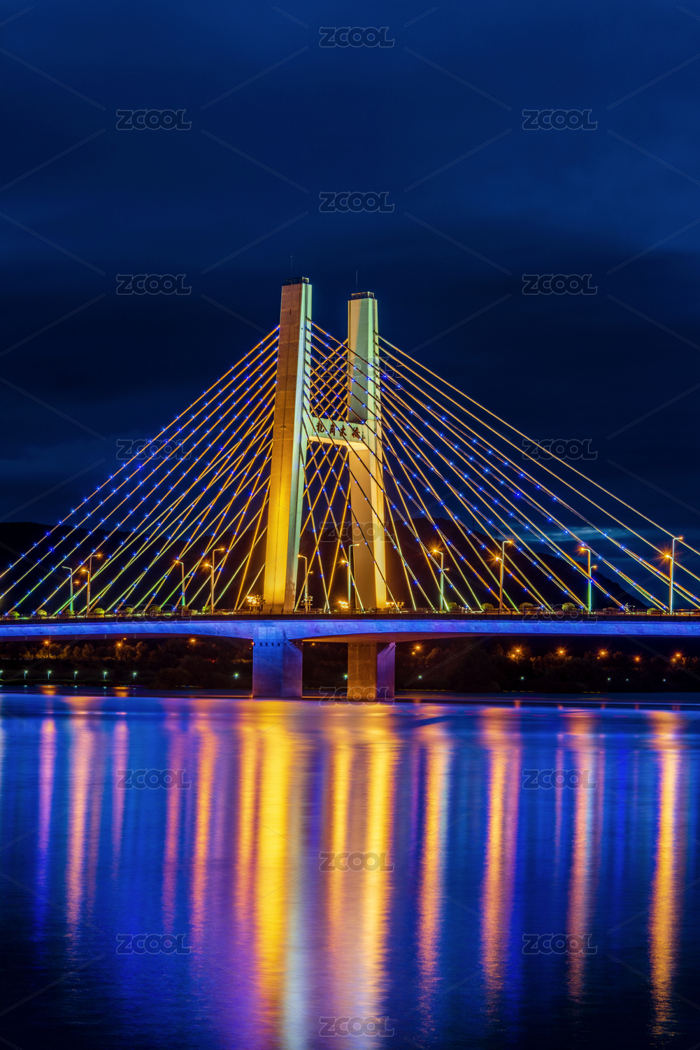 中国陕西汉中汉江龙岗大桥夜景