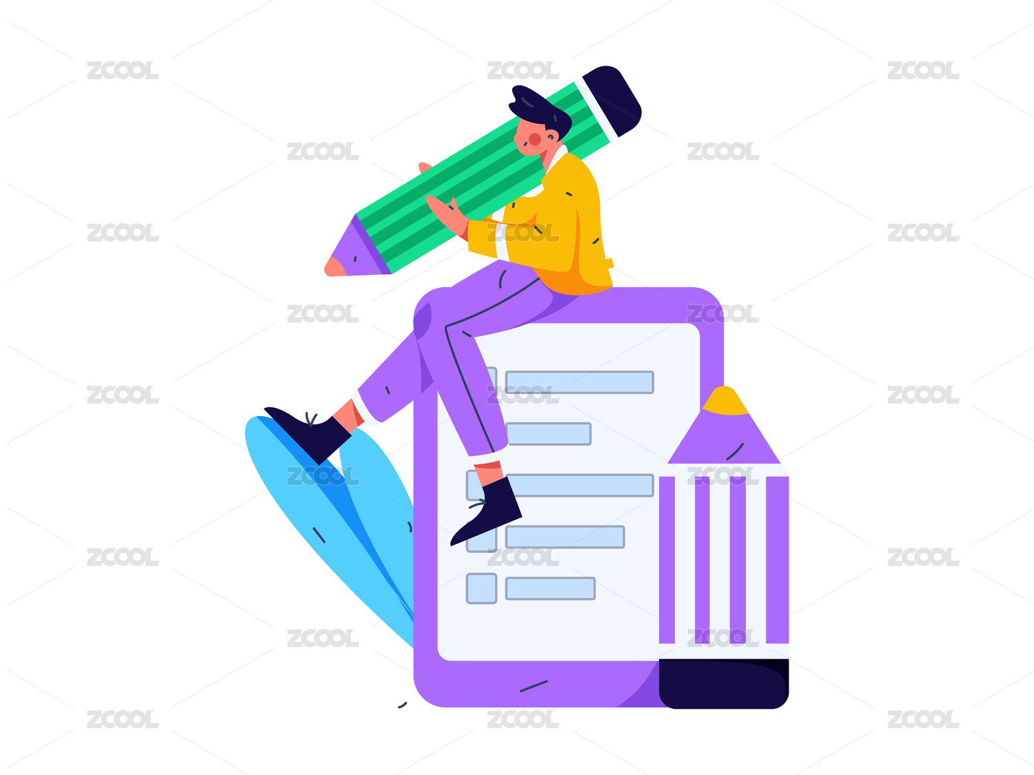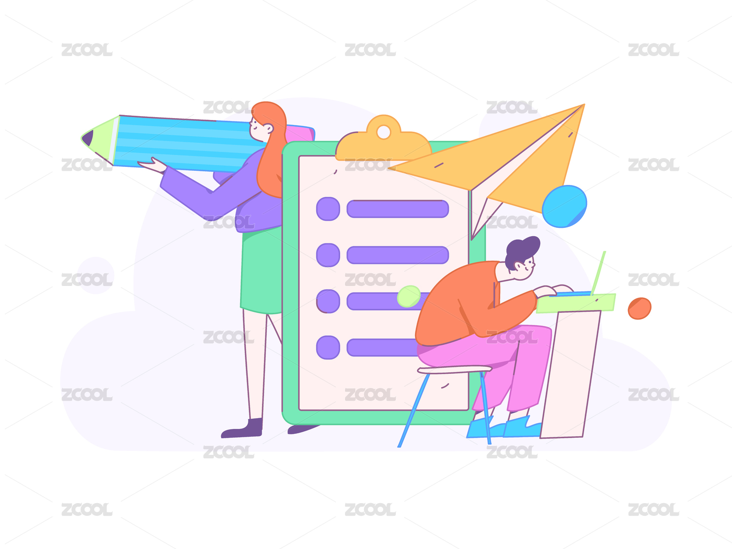 邀请填写问卷调查, 矢量扁平人物场景创意概念插画