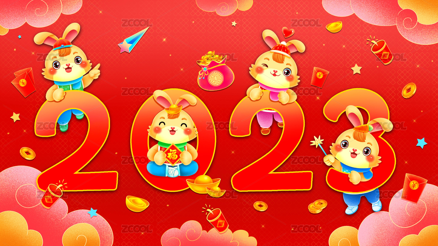 插画,创意插画,新年,元旦,兔年,2023,金元宝,红包,欢快,喜庆