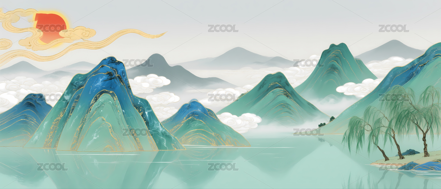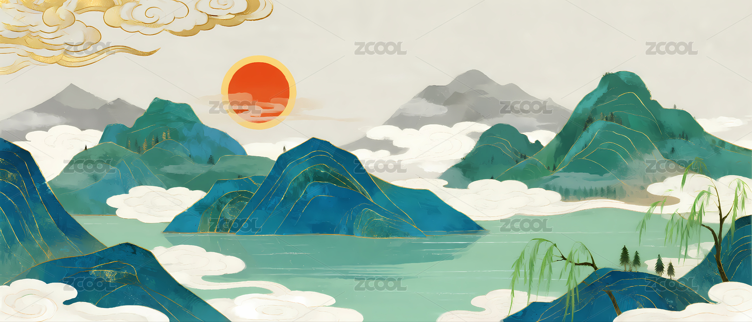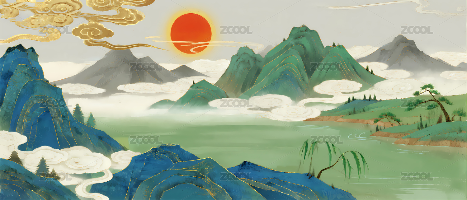 山水国潮风山水风景场景