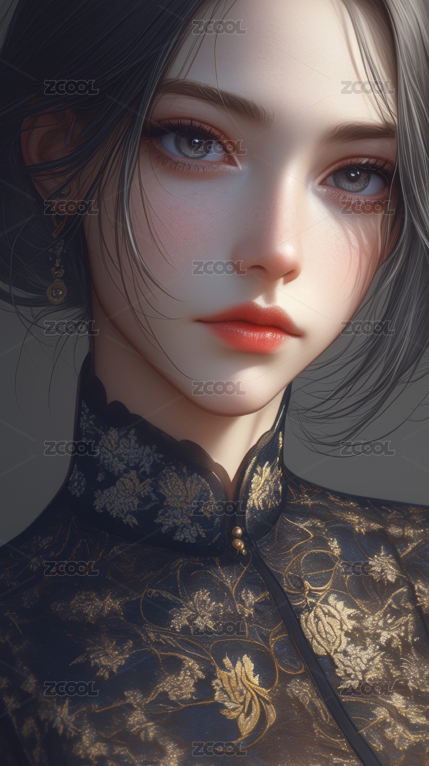 一位穿着白衬衫和金耳环的女人特写高清图片