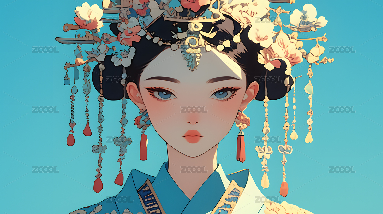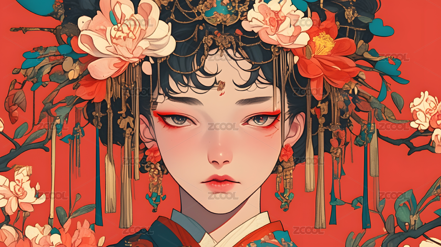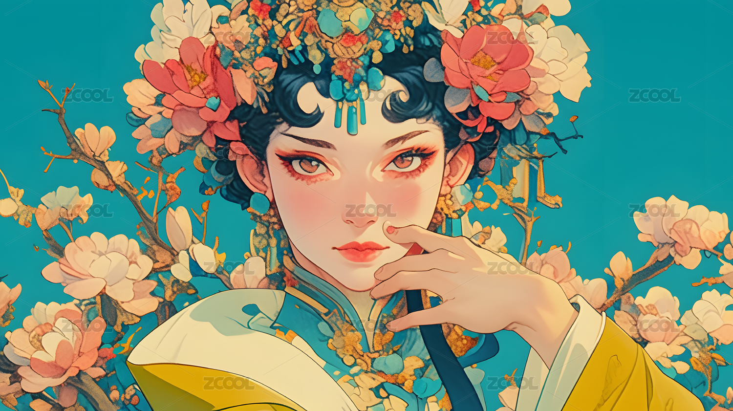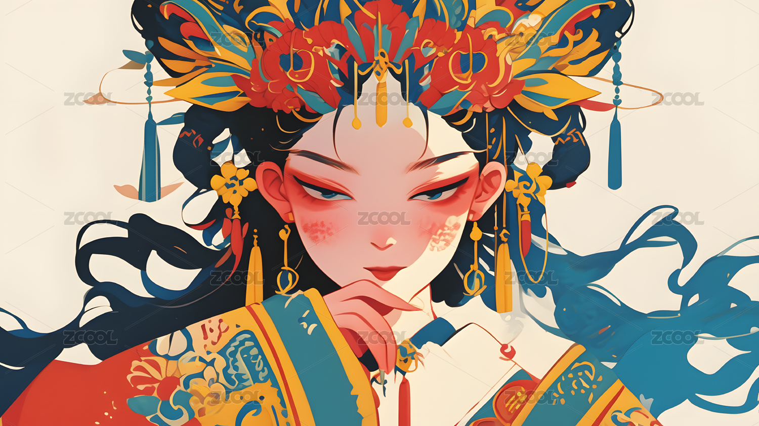中式,国潮风,中国风,美女,女孩,插画,卡通