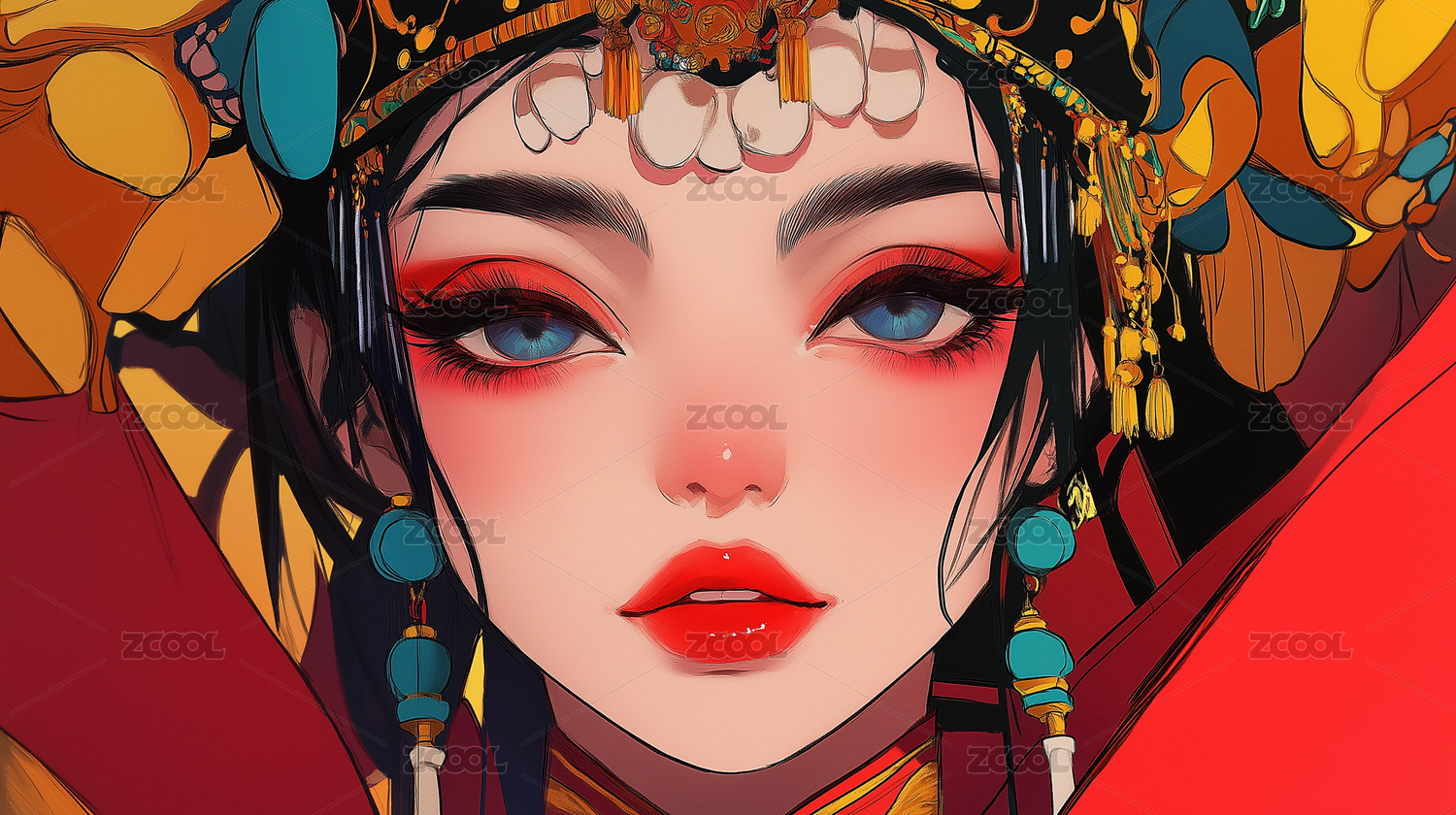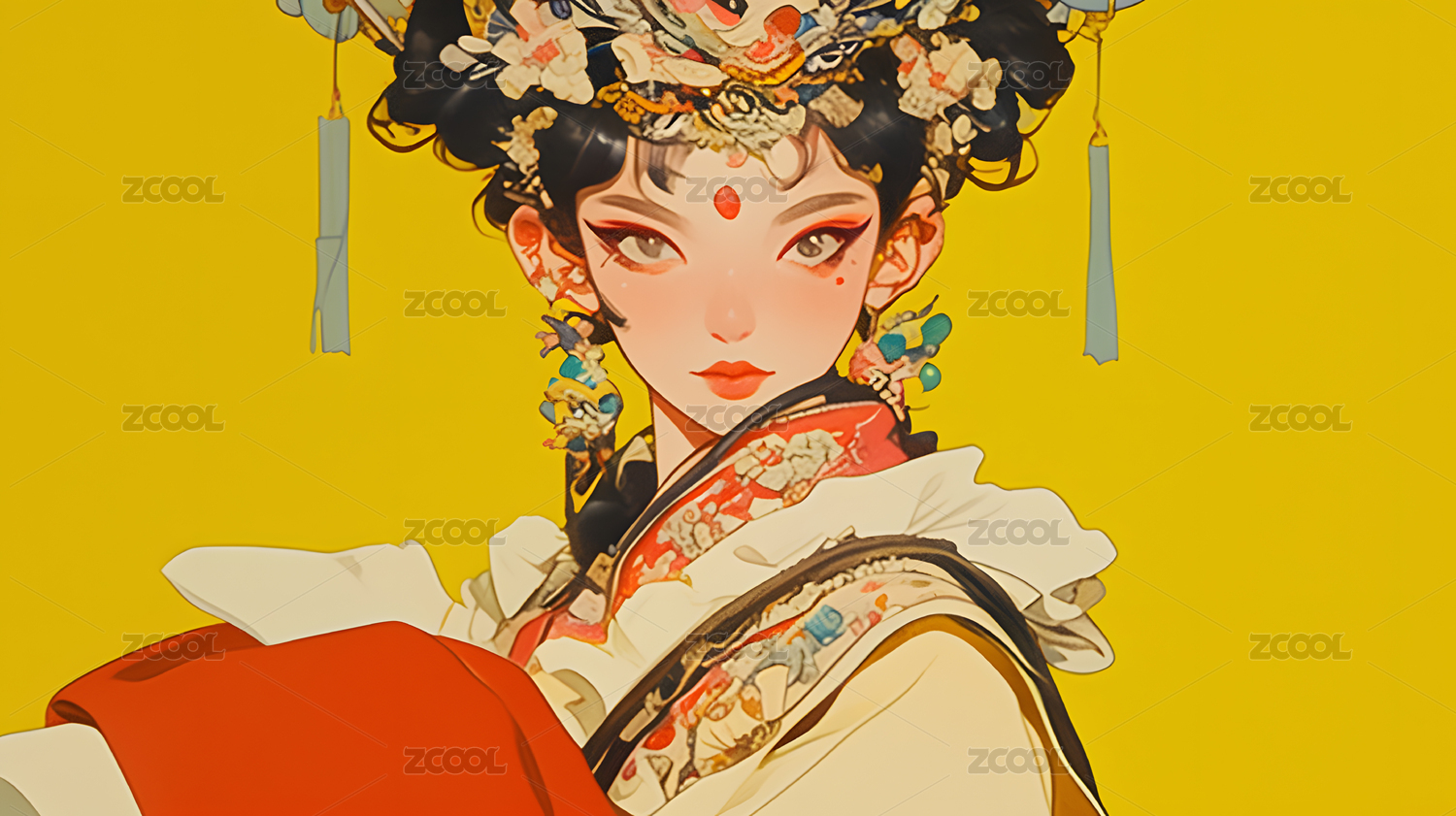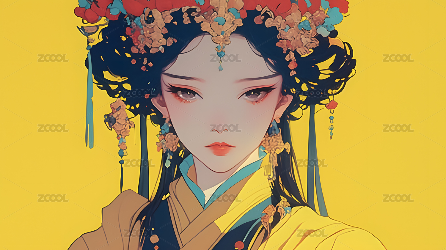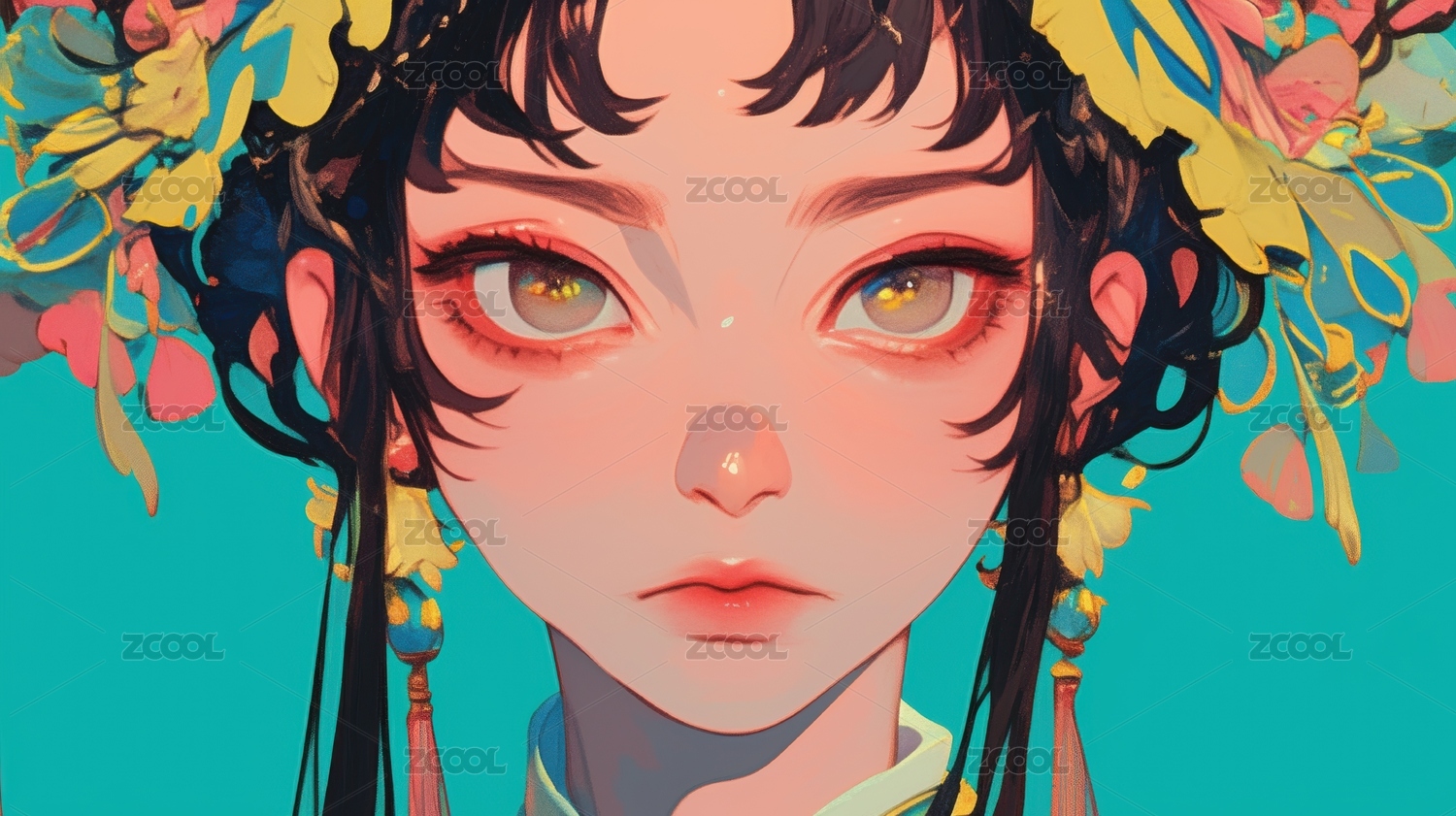 中式,国潮风,中国风,美女,女孩,插画,卡通