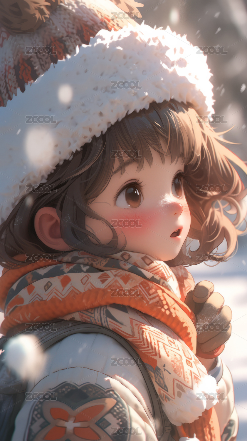 冬天,雪花,雪,女孩,卡通,插画,3D,设计