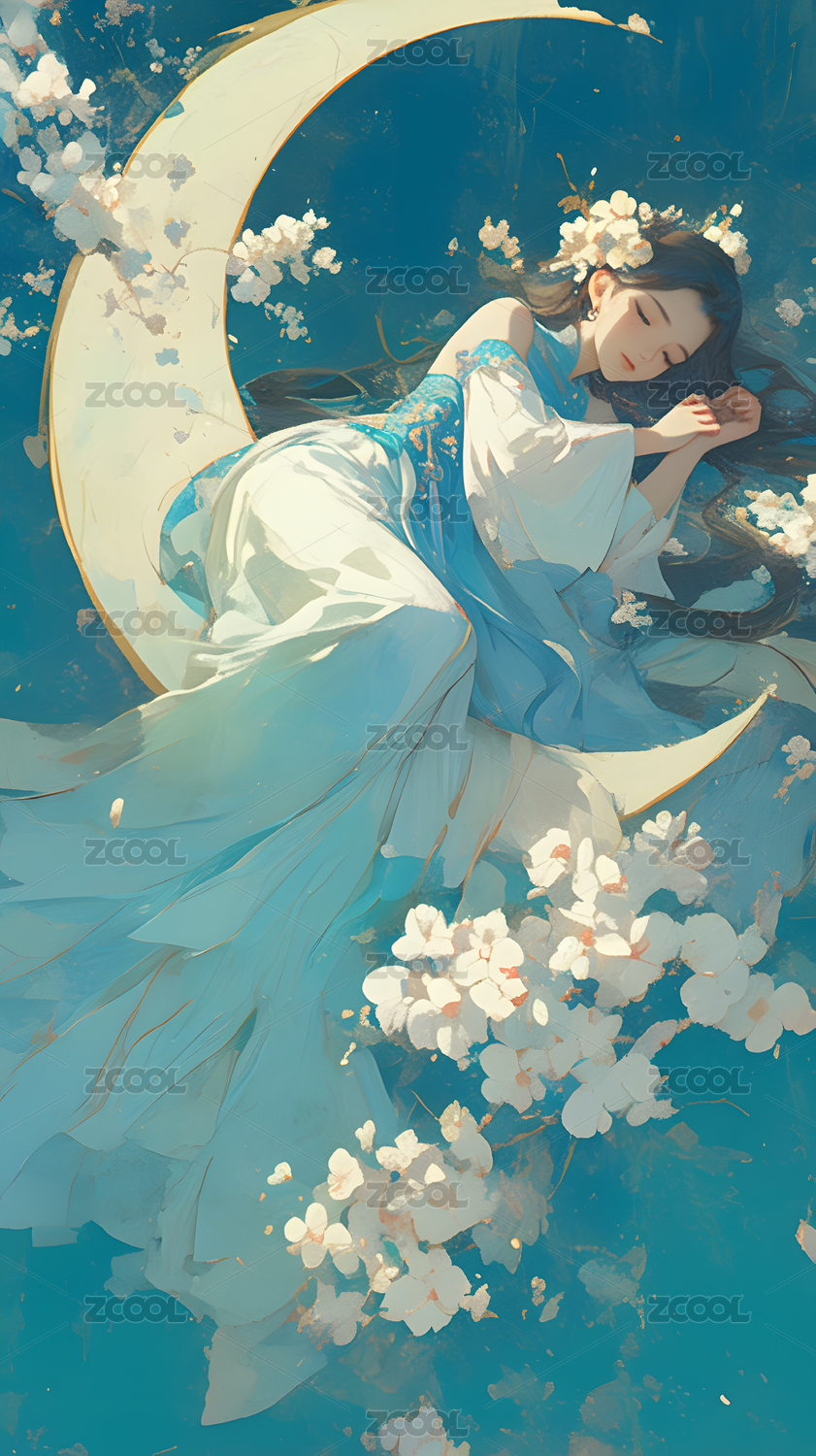 月光中站在云端的嫦娥