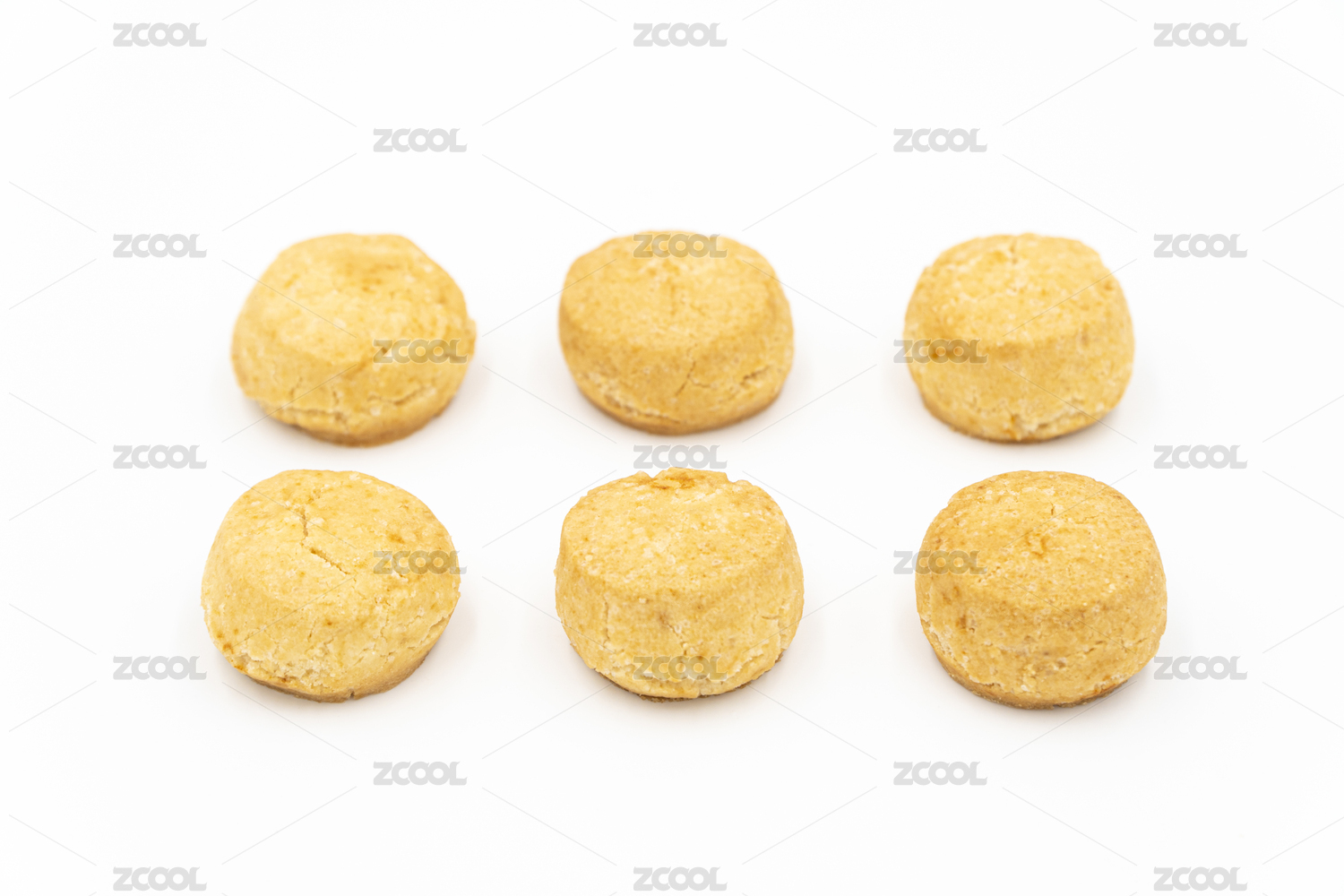 白色背景上餐具里摆放的番茄口味的山药脆片
