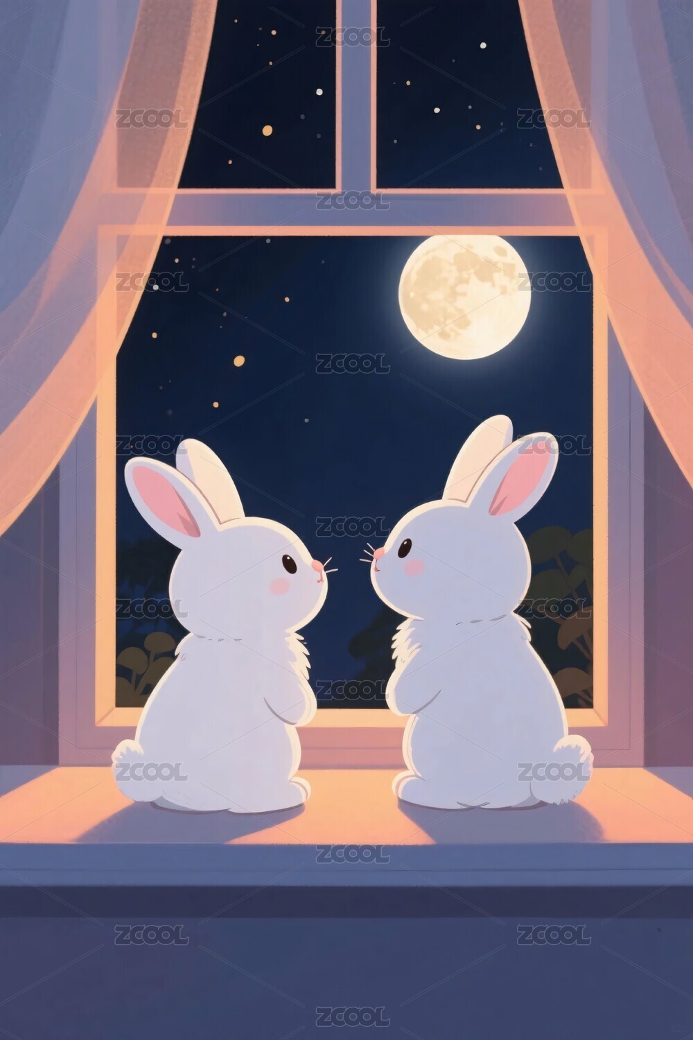 中秋节,节日,玉兔,兔子,卡通,插画,月亮